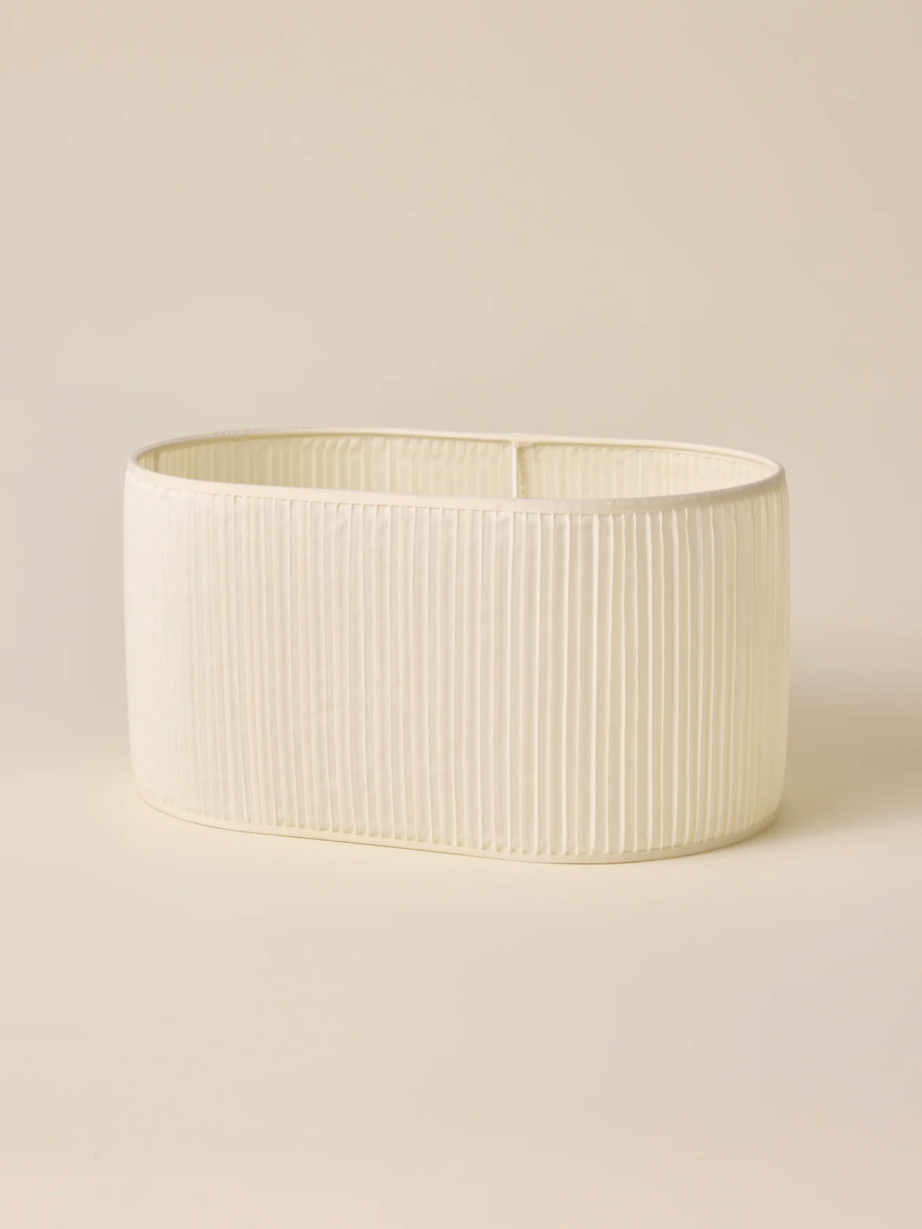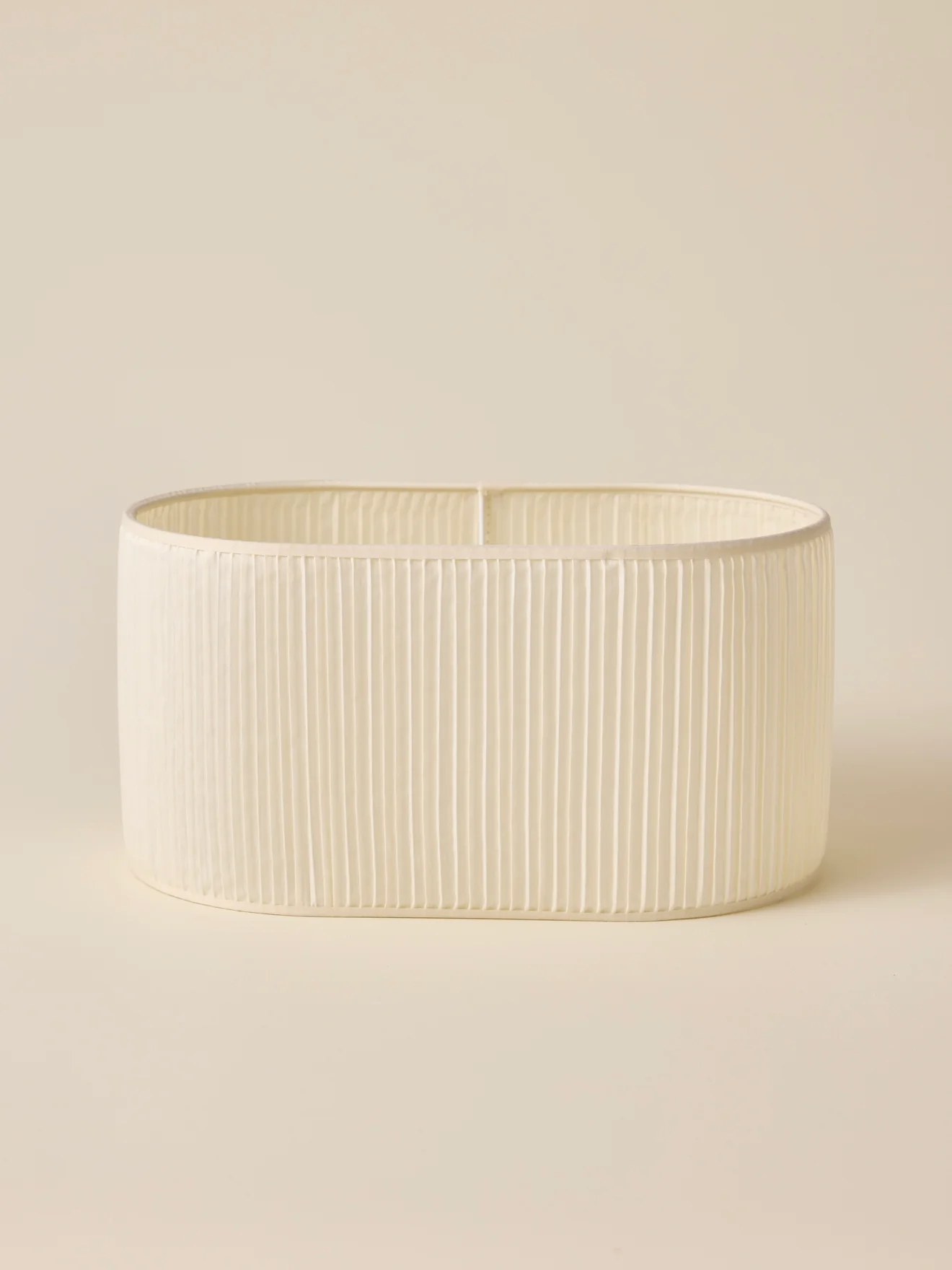 Modèle ovale en tissu plissé légèrement satiné, coloris ivoire. Un travail de « haute couture » réalisé à la main. Cet abat-jour singulier est une exclusivité Cyrillus Maison fabriquée en France de manière artisanale par un atelier français spécialiste de l’abat-jour