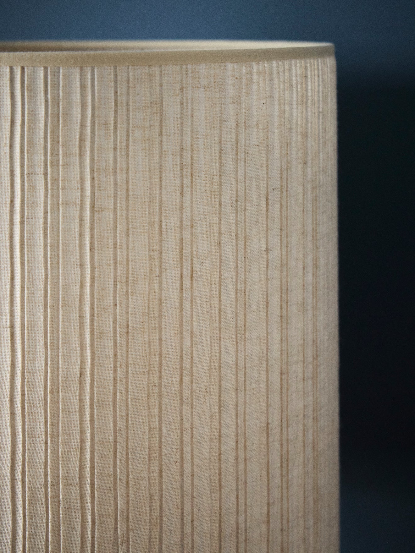 Modèle cylindrique en lin plissé. Sa forme et sa grande hauteur sont inspirées des lampes des années 70. Une exclusivité Cyrillus Maison fabriquée en France de manière artisanale par un atelier français spécialiste de l’abat-jour