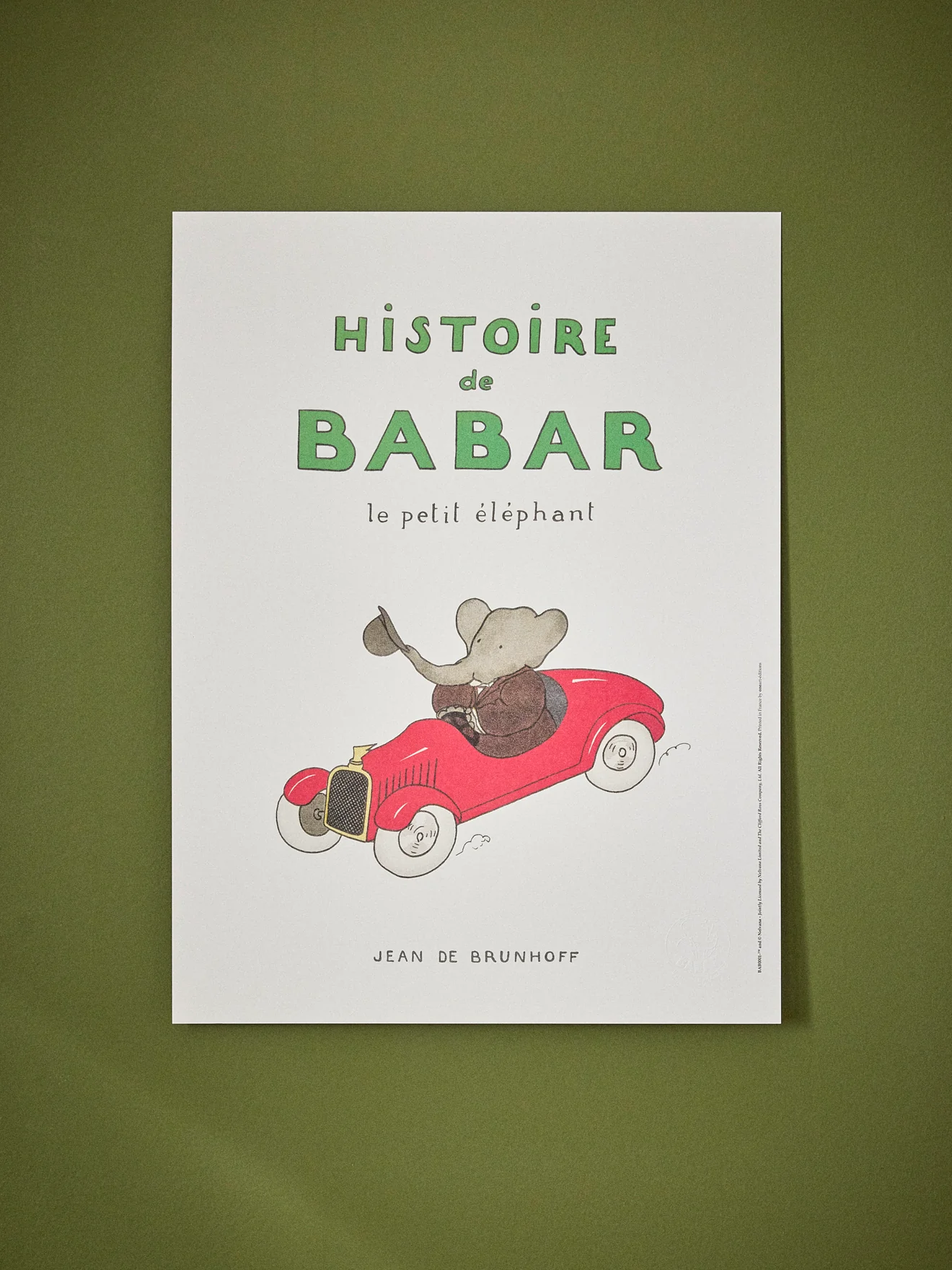 Affiche officielle Babar™ fabriquée en France en édition d’art imprimée sur papier texturé, coloris crème.