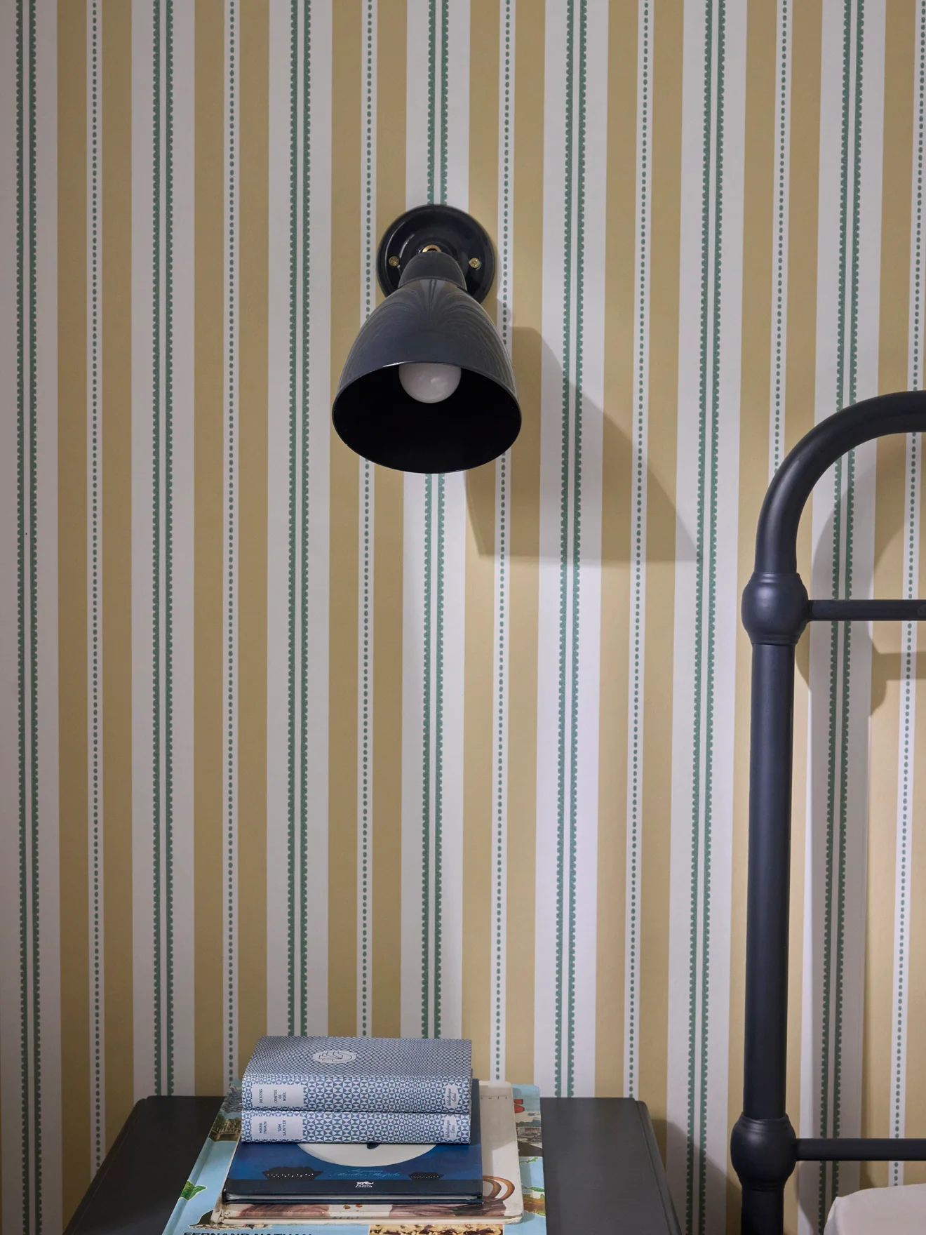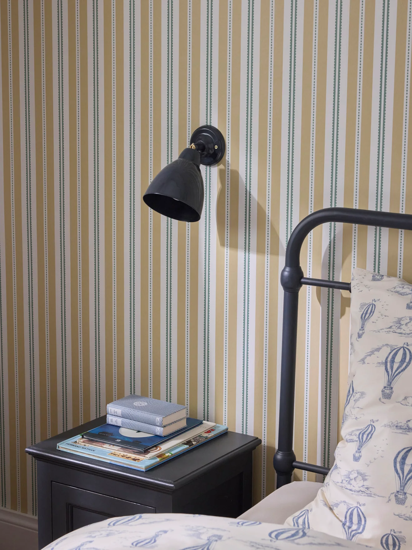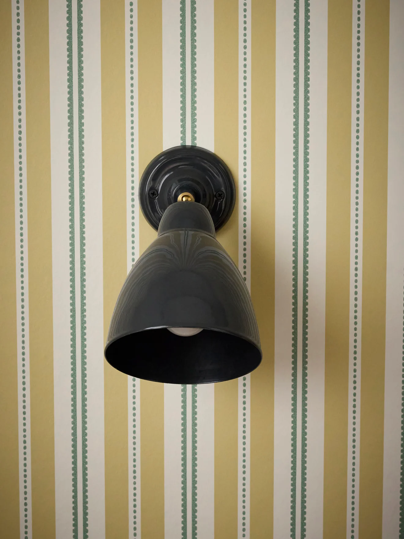 Applique murale orientable en métal émaillé peint, fabriquée en Inde de façon artisanale. Elle se fixe directement au mur, sans câble ni prise.