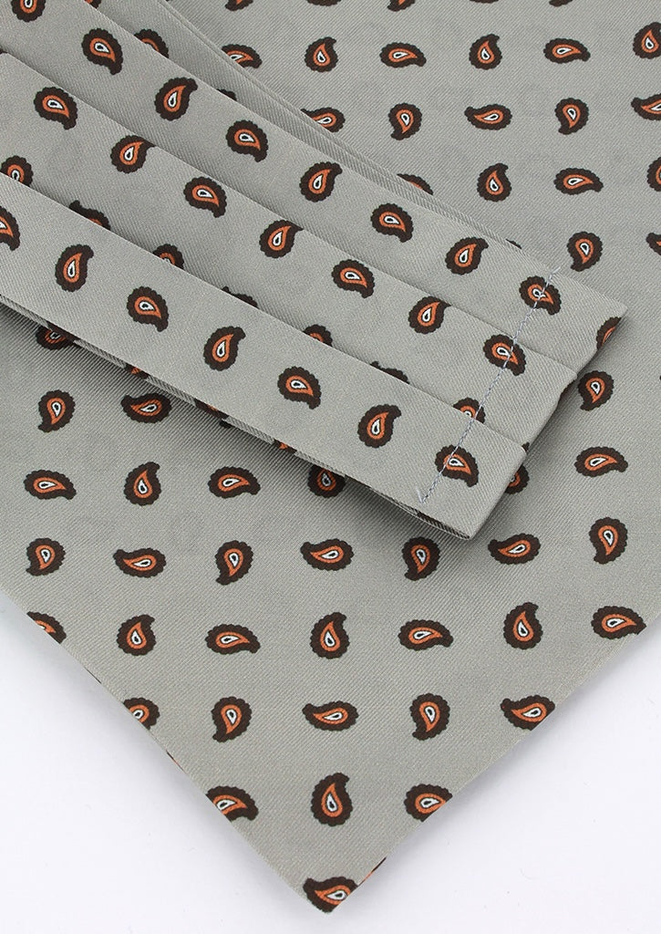 Ascot homme 100 % soie de couleur beige à motifs paisley. Cet ascot de la marque Cotton Park est d’une largeur de 16 cm et d’une longueur de 136 cm.