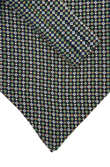 Ascot bleu marine à motifs vert et orange
