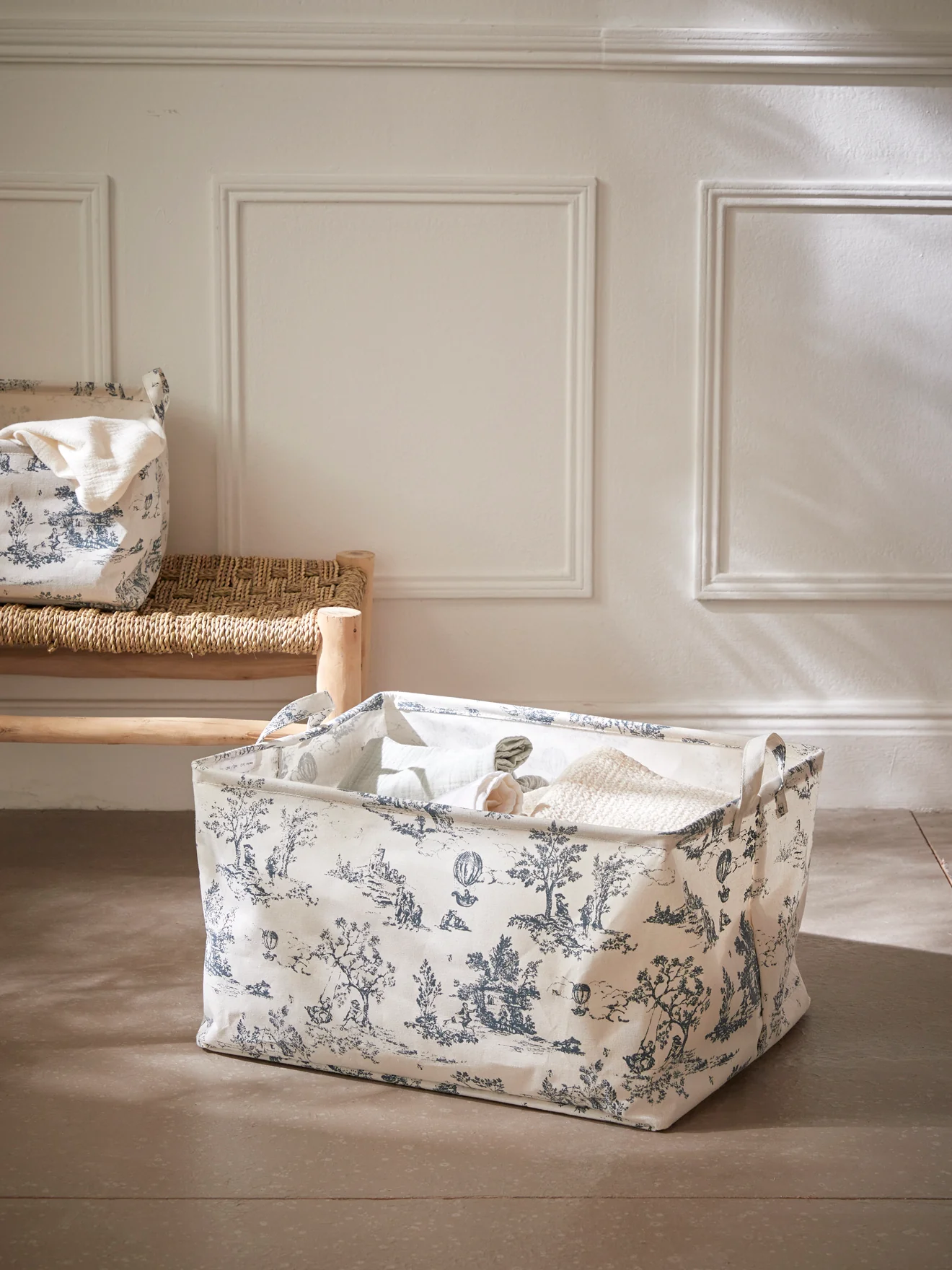 Bac de rangement rectangle esprit toile de Jouy