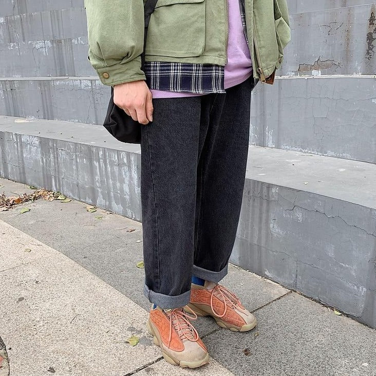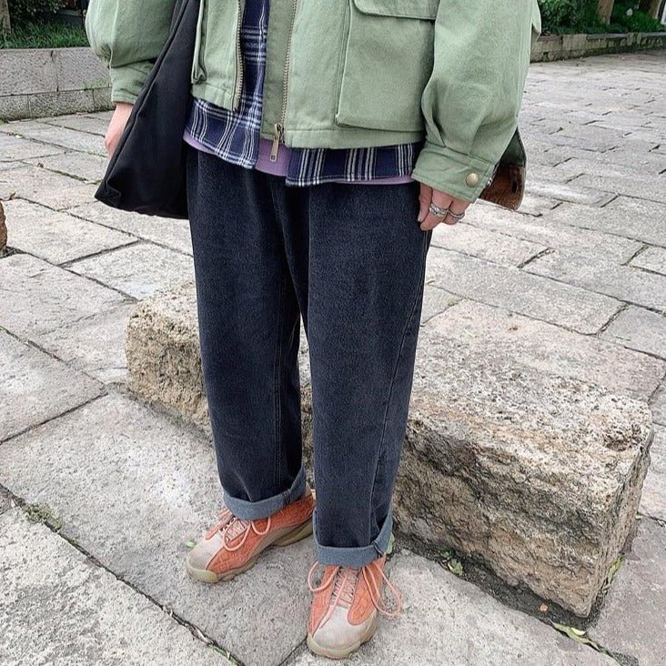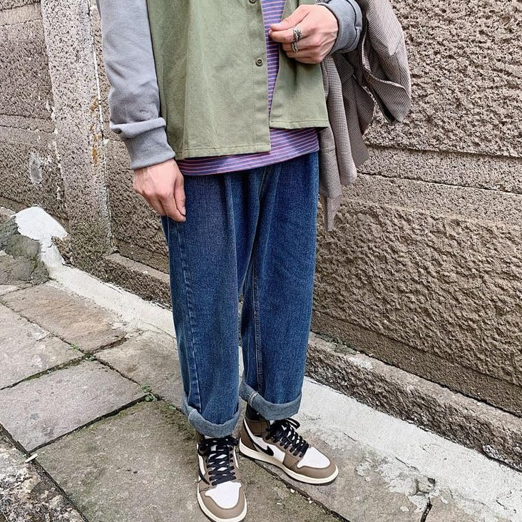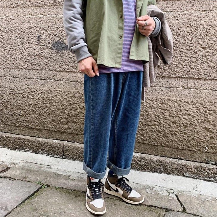 Ce pantalon en jeans droit est appelé un Baggy. Ce modèle est très populaire en Corée du Sud, car les coréens apprécient les coupes droites. Faites vos ourlets et partez vivre des aventures avec jeans large. Si vous aimez la mode vintage coréenne, c’est le pantalon idéal.