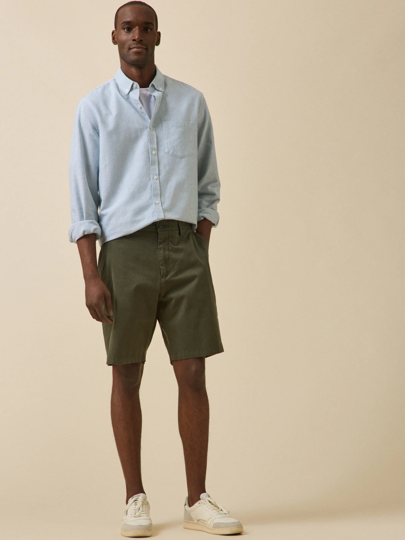 En version bermuda, le chino prend ses quartiers d’été sur une gabardine souple tout confort, avec une coupe remise au gout du jour (un peu moins longue, un peu plus large). Un essentiel du vestiaire urbain décontracté.