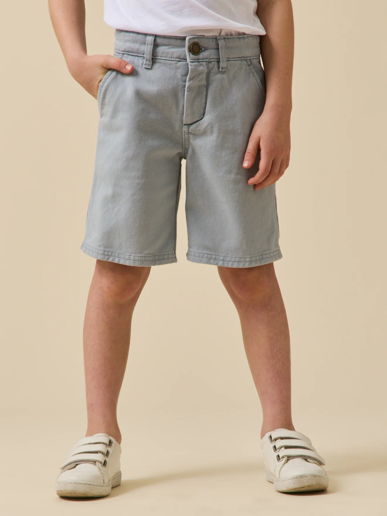 Un denim coloré qui se coordonne à tout le vestiaire estival Fermeture par bouton et glissière. Taille ajustable de l’intérieur par élastique boutonné 2 poches italiennes, 2 poches plaquées dos Longueur dessus genou