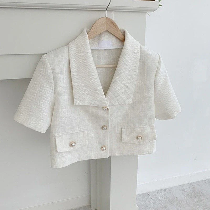 Si vous êtes une femme qui s’assume et qui adore la mode coréenne, ce blazer court est parfait pour vous. C’est un beau blazer blanc avec une coupe de crop top ouvert. Il est idéal pour aller travailler ou pour sortir. Ce petit haut est fait pour toutes les saisons en fonction de la température.