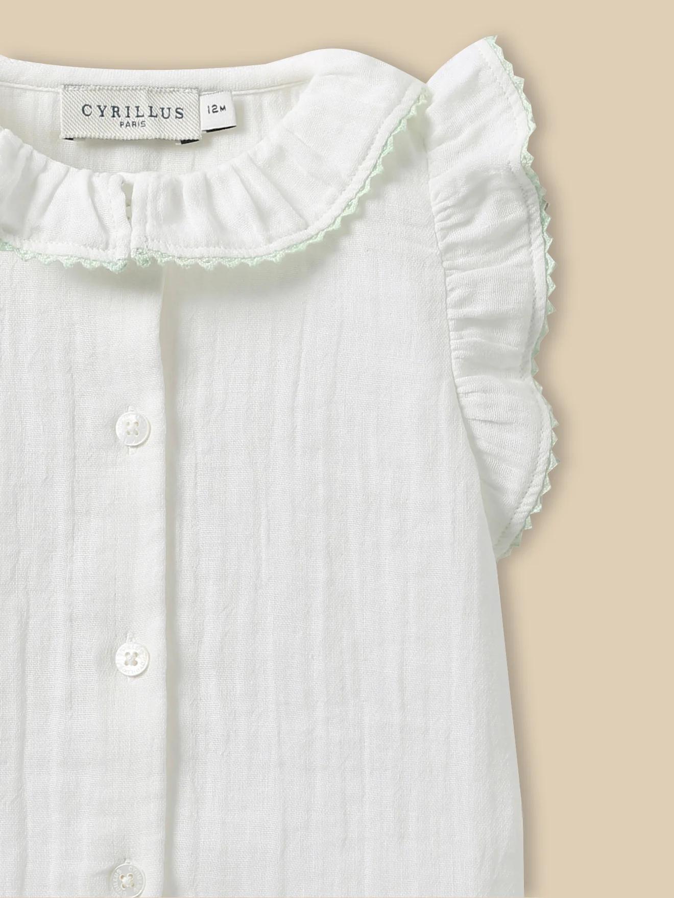 Légère et aérienne, une blouse en gaze de coton aux jolis volants d’été.