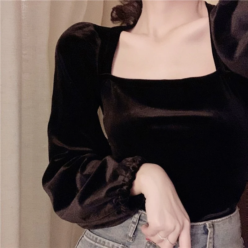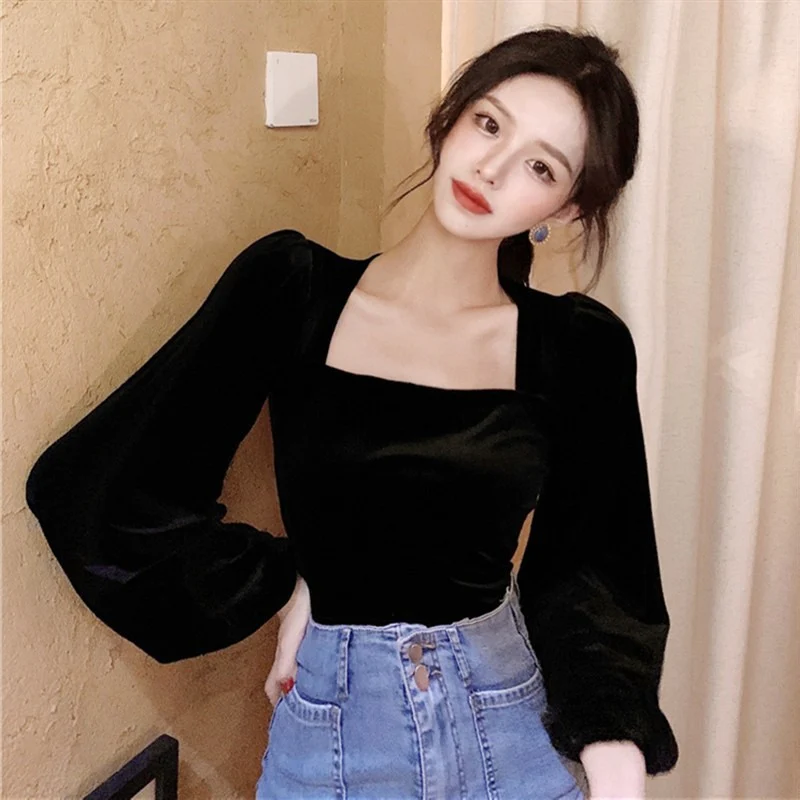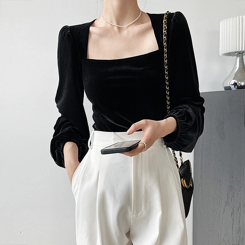 Adoptez un look chic et vintage avec notre blouse en velours coréenne. Cette pièce élégante est dotée de manches bouffantes et d’un col carré, idéale pour une touche de sophistication française. 🌟