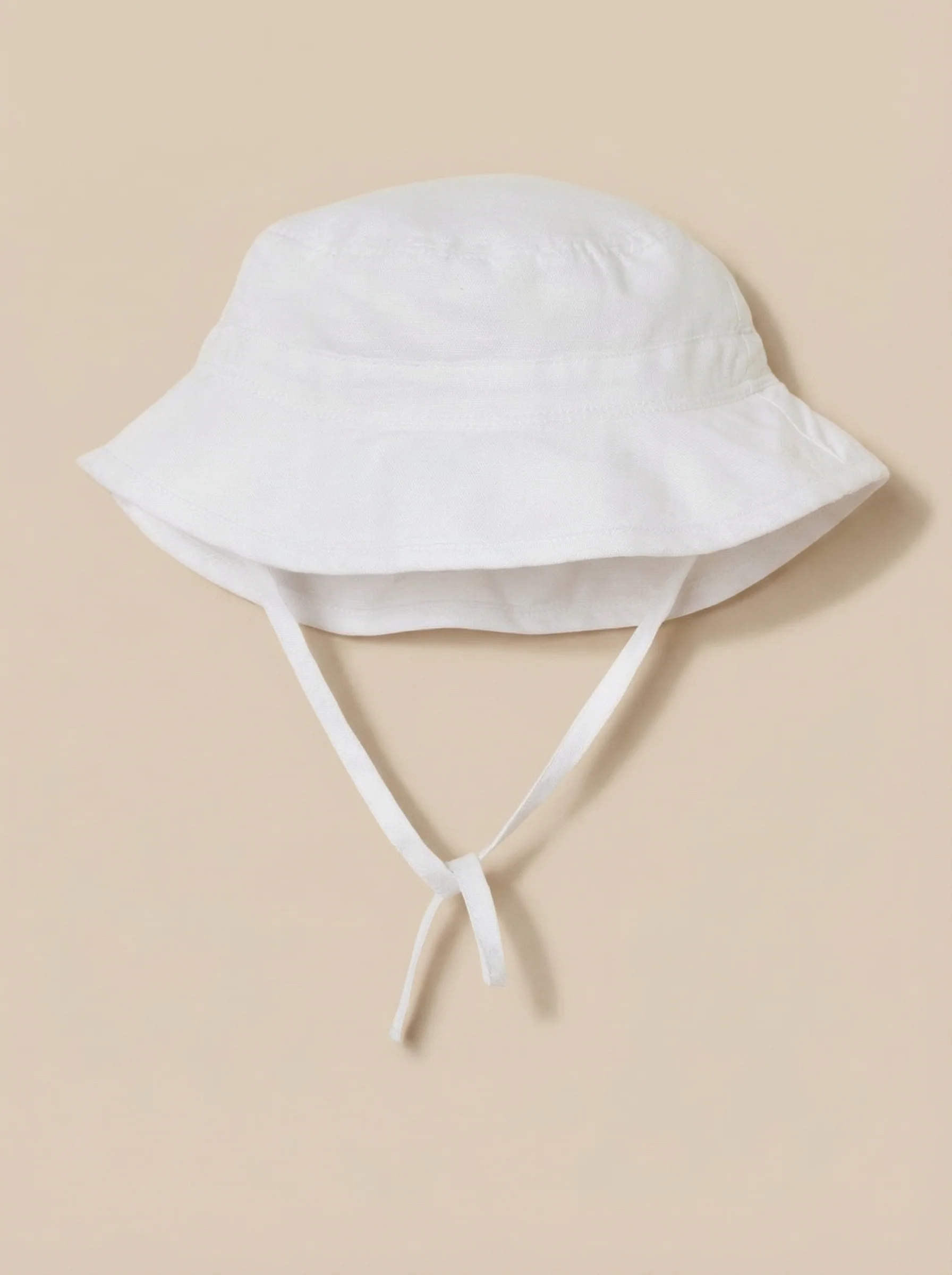 Blanc immaculé, parfait pour une cérémonie, un baptême ou une belle journée d’été, ce bob protègera avec élégance votre enfant du soleil.