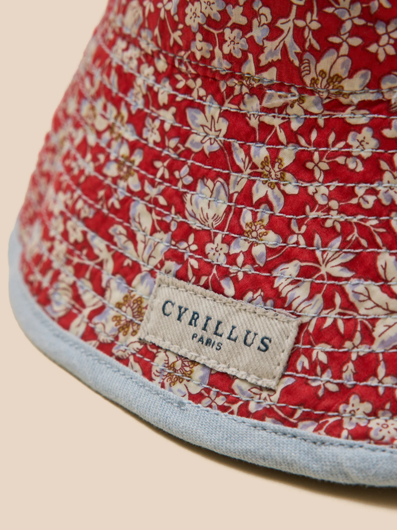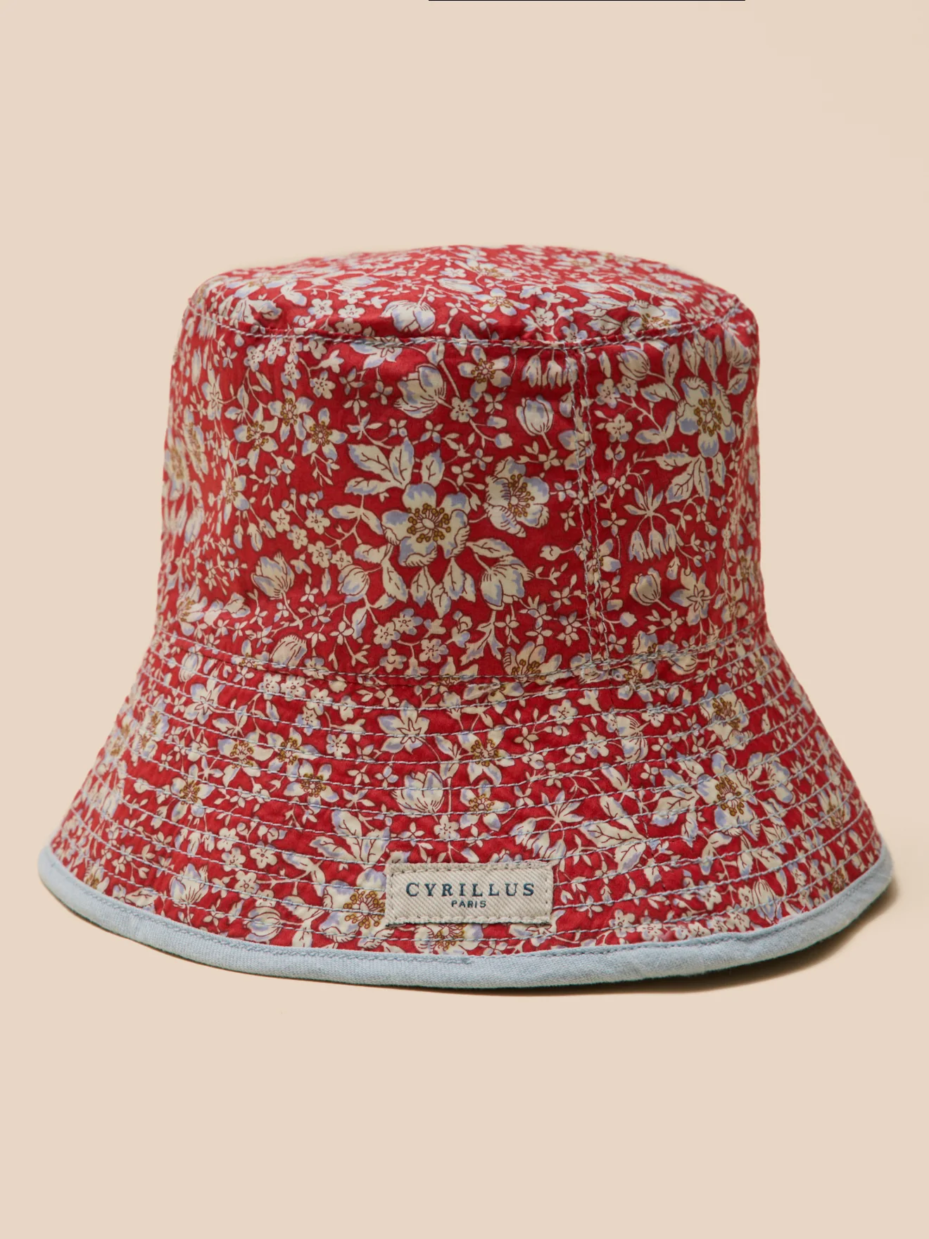Un bob réversible : une face en tissu Liberty Lizzy, délicat et fleuri, l’autre en denim pour un look plus casual. Deux ambiances en un seul accessoire !