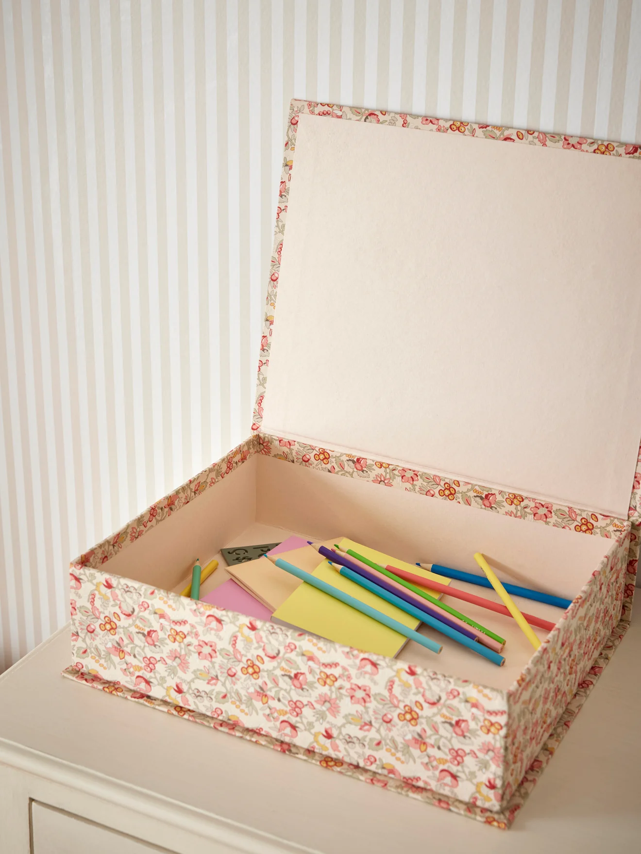 Boîte en tissu coton fleuri, imprimé Mireille. L’imprimé Mireille est une exclusivité Cyrillus inspiré d’un tissu ancien. La boîte s’ouvre et se referme simplement grâce à un couvercle rabattable. Boîte fabriquée en Inde de façon artisanale. Dim. L.34,5 x H.9 x l.28 cm env.