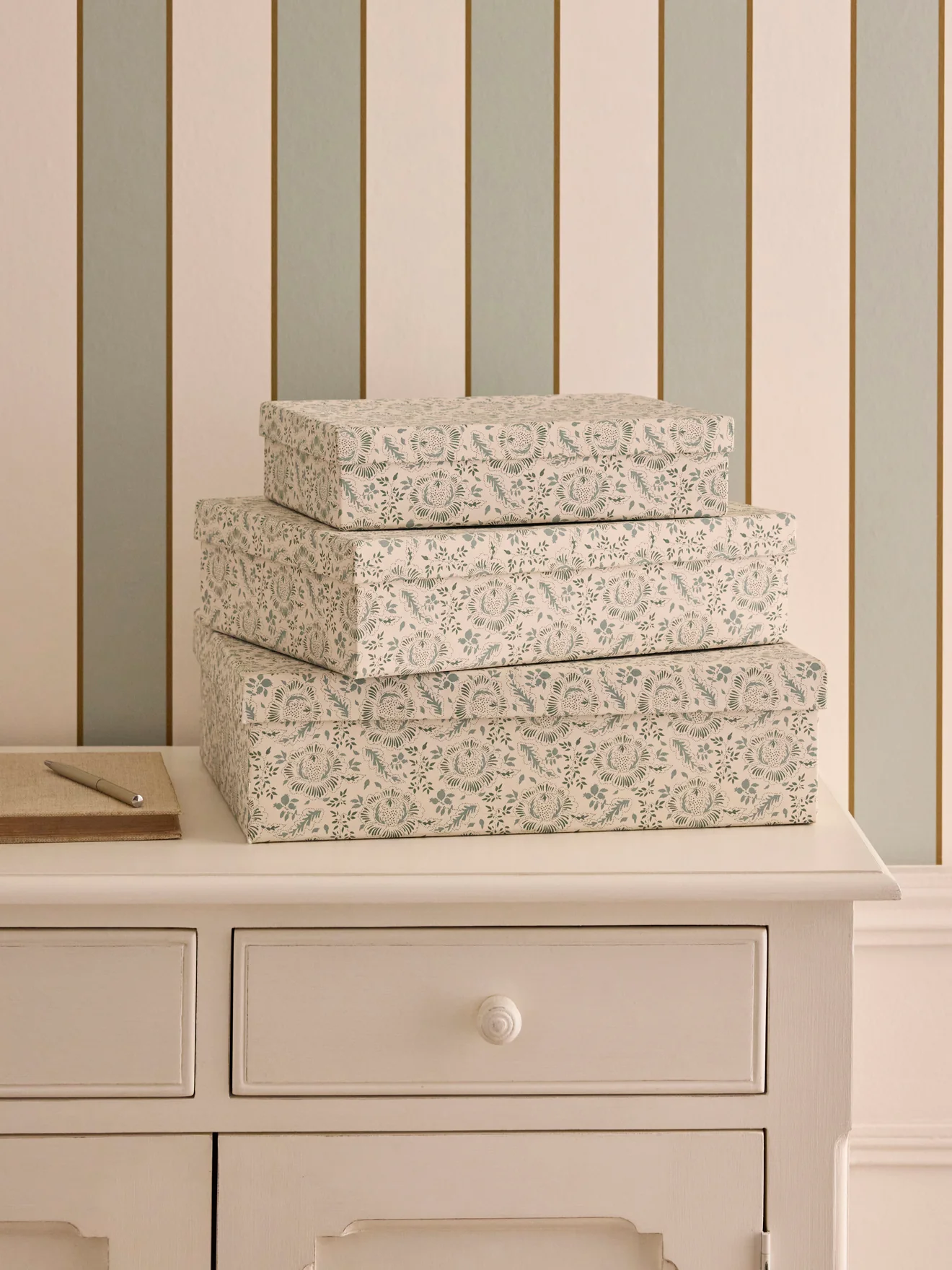 Lot de 3 boîtes de rangement rectangulaires et décoratives, recouvertes de notre imprimé Géraldine. L’imprimé Géraldine est un dessin exclusif Cyrillus. Boîtes et couvercles en papier structuré, fabriquées en Inde de façon artisanale.
