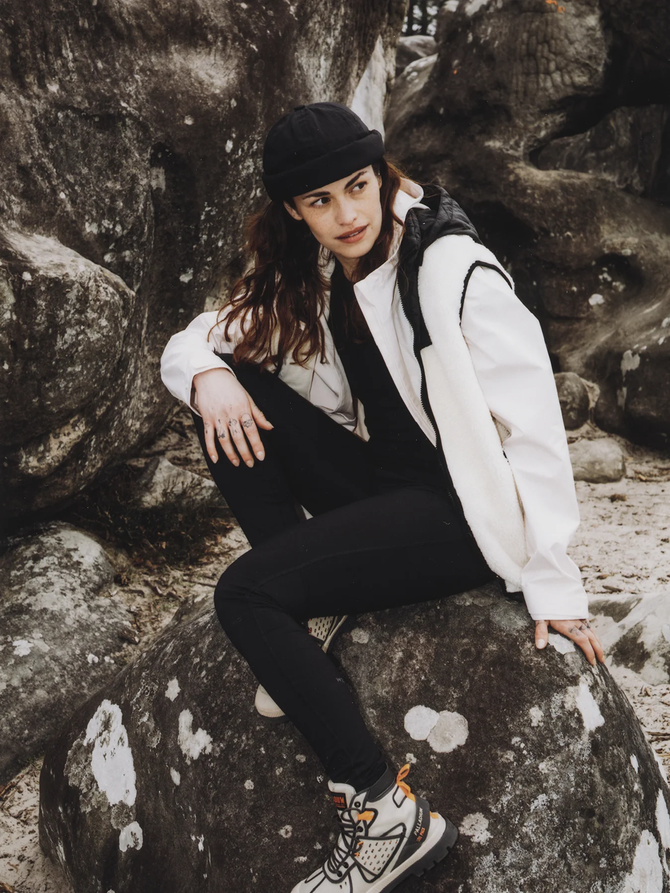 bonnet docker miki de chez Béton Ciré en coton noir __TAB__ fiche technique Bonnet docker miki Taille réglable à l’arrière Patte de serrage : 100 % cuir de vache montée sur velcro Composition : 100 % coton Fabriqué au Portugal Taille M : 56 cm à 59 cm Taille L : 60 cm à 63 […]