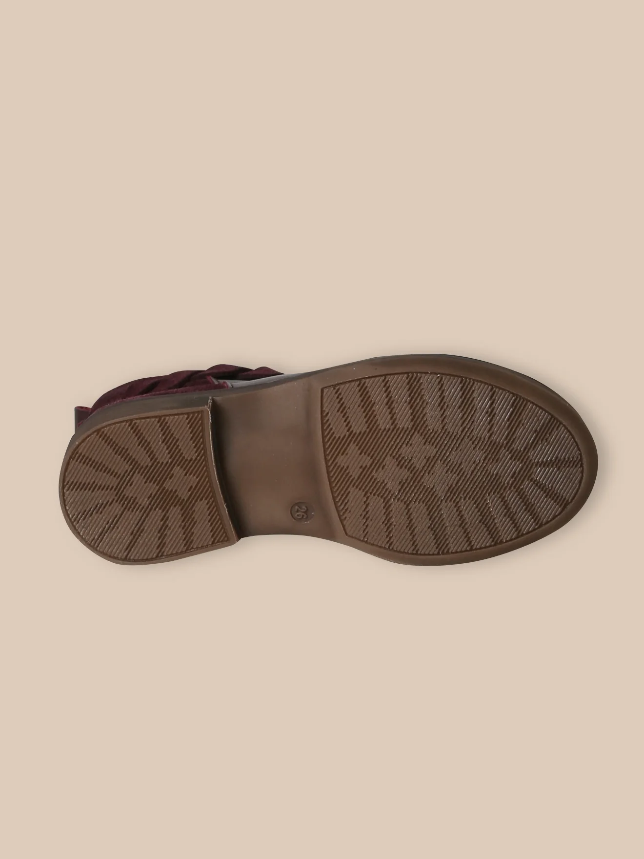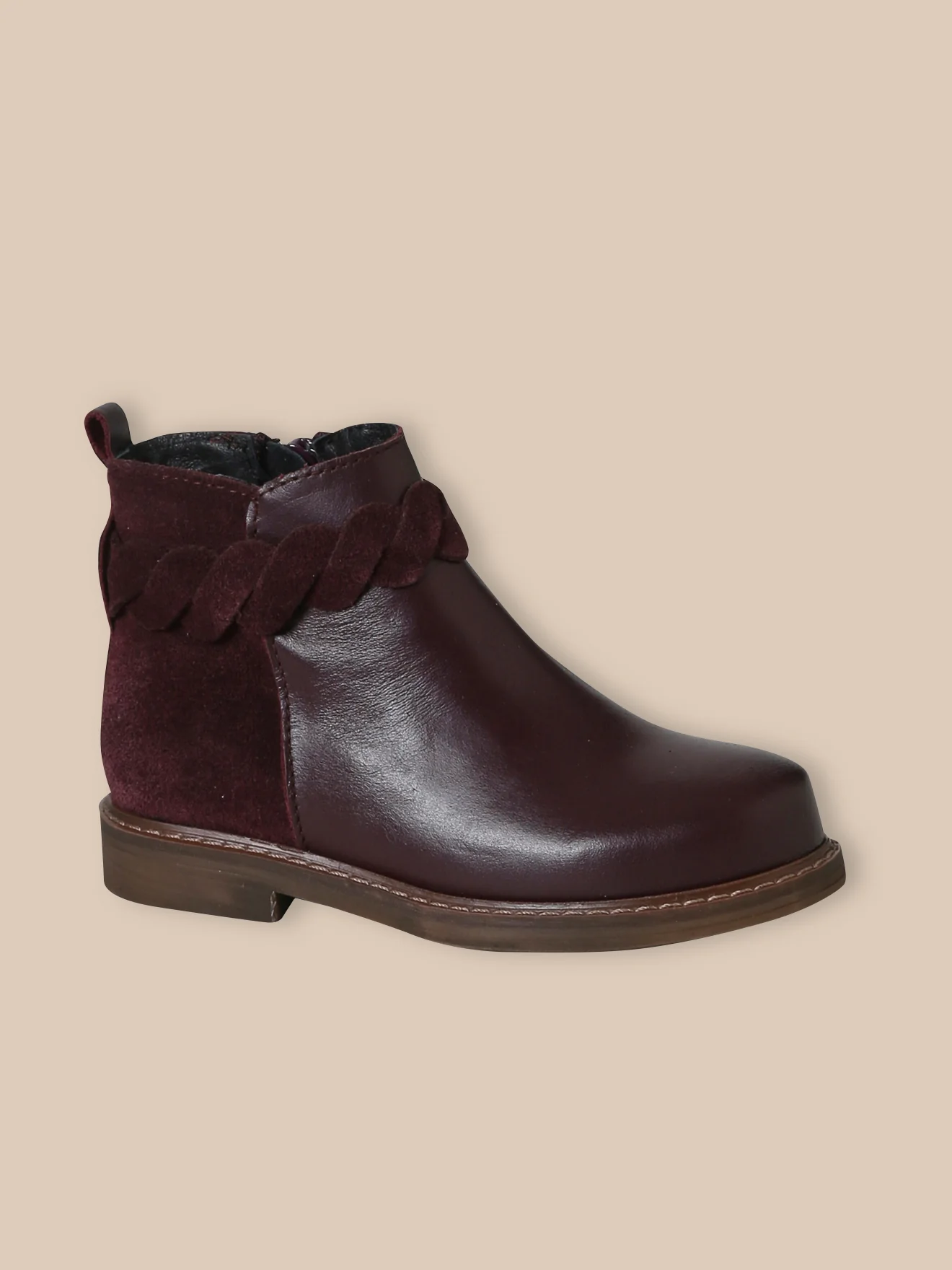 Boots en cuir lisse, délicatement soulignée d’une tresse en cuir velours.