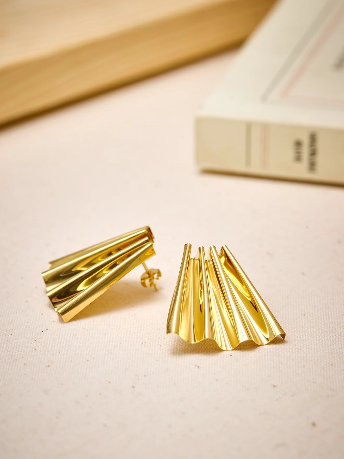 Les modèles Françoise Collection Chic Alors sont des boucles d’oreilles en métal doré, plissées et plaquées à l’oreille façon éventail. Iconiques de la marque, elles possèdent un style unique et bénéficient d’une légèreté incomparable. Elles sont conçues pour les oreilles percées.
