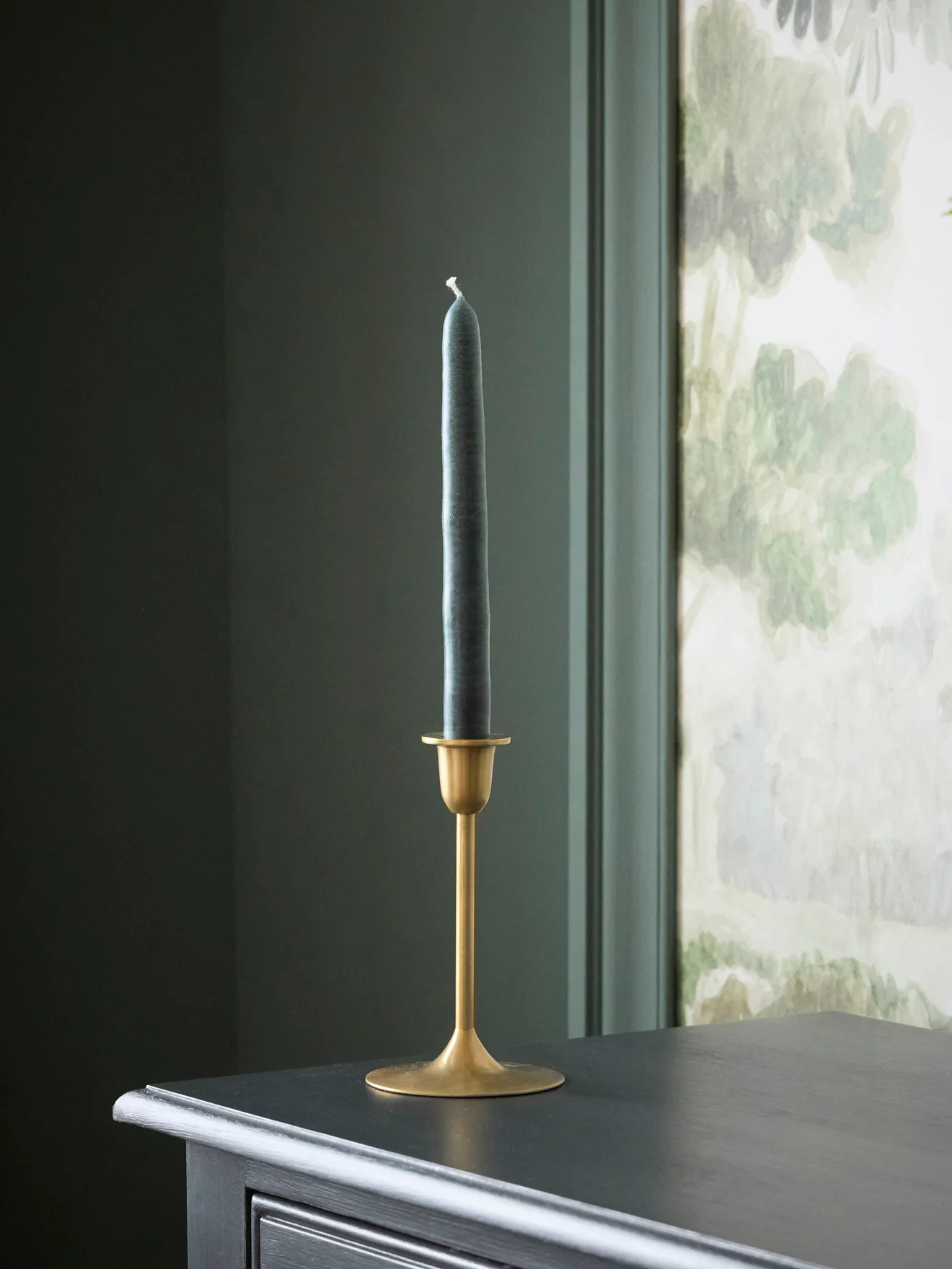 Bougeoir fin et élégant en laiton pour accueillir une bougie chandelle standard. À associer à d’autres bougeoirs de la collection.