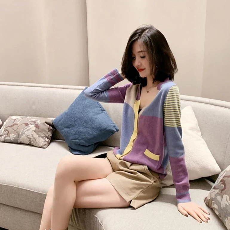 Vous cherchez un haut pour votre nouveau style de femme ? Voici un cardigan coréen qui devrait vous plaire. Ce haut classique est coloré et possède des motifs variés. C’est le type de haut qui plait beaucoup aux coréennes pour aller en cours ou travailler.