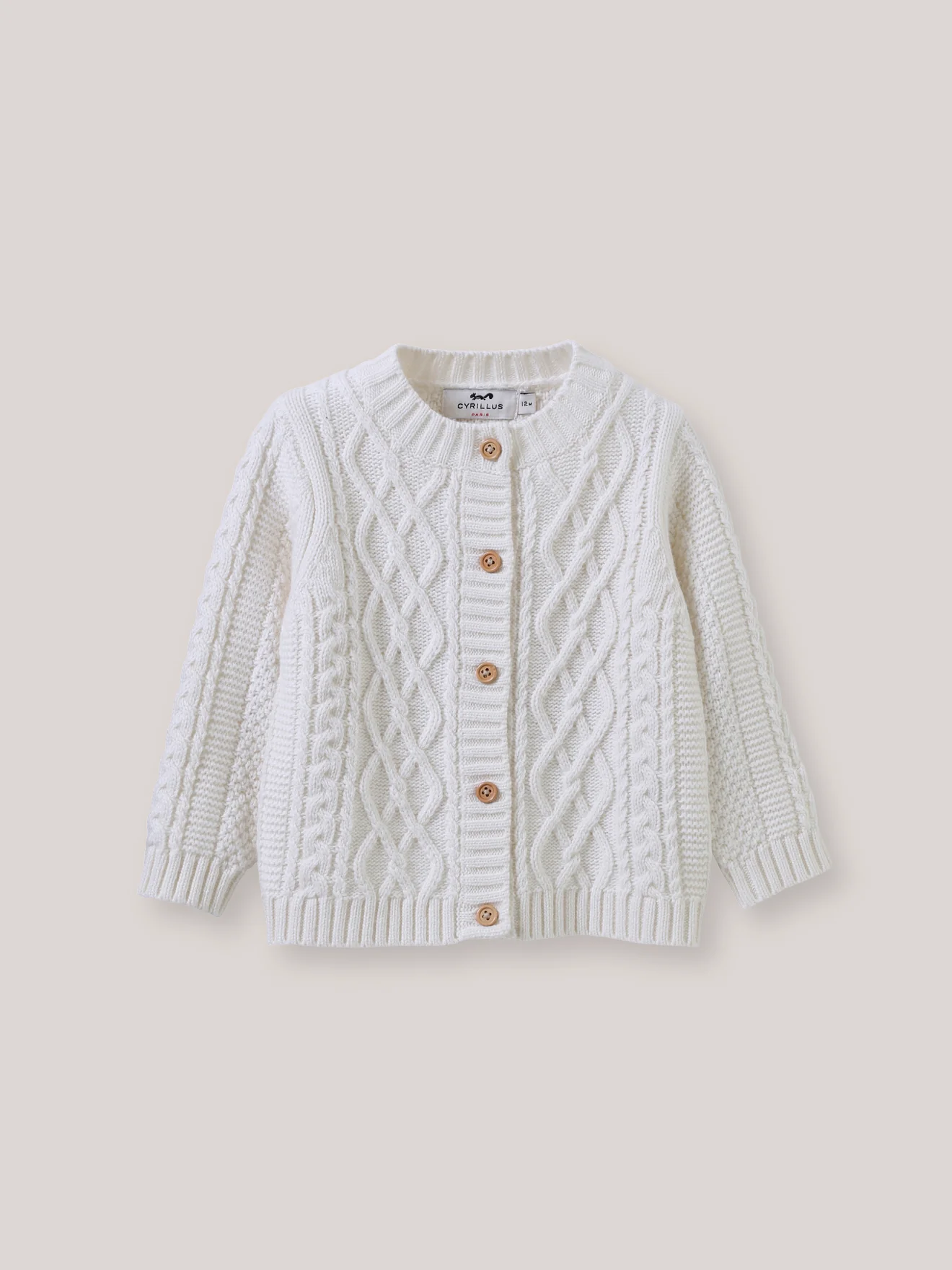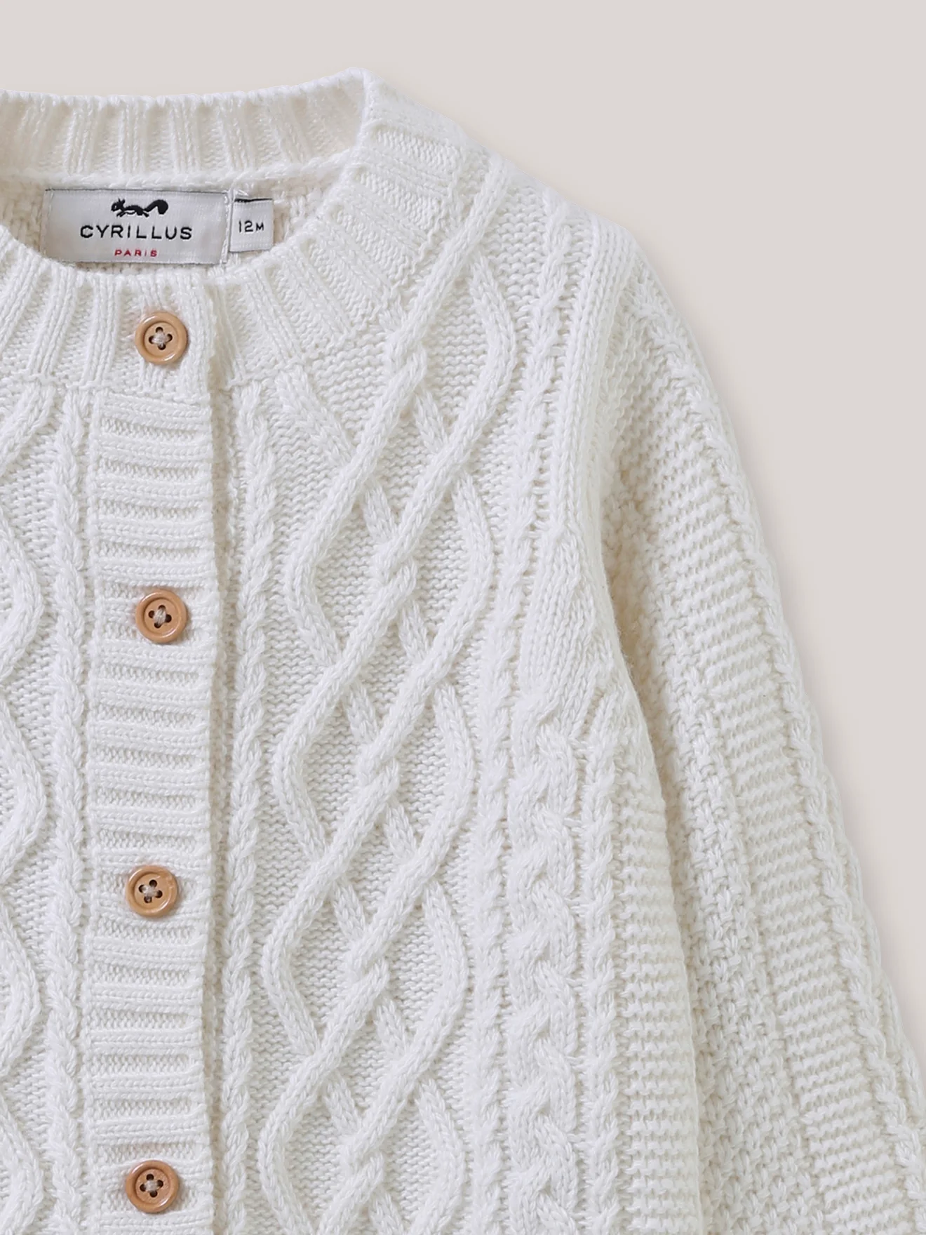 On le reconnait grâce à son élégance classique, sa torsade travaillée et sa maille en laine naturelle… un intemporel qui réchauffe tout le vestiaire de bébé. Torsades devant et sur les manches Maille fantaisie au dos Ouverture par boutons en bois