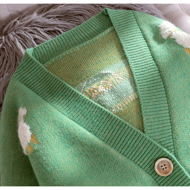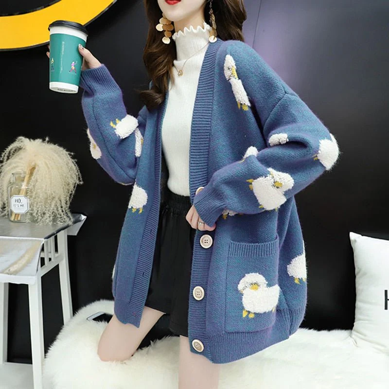 Cette petite veste cardigan est brodée avec des petits moutons blancs. C’est une veste mignonne inspirée de la mode coréenne. Elle est disponible en plusieurs couleurs. Cette veste coréenne est conçue en laine synthétique (non animale).