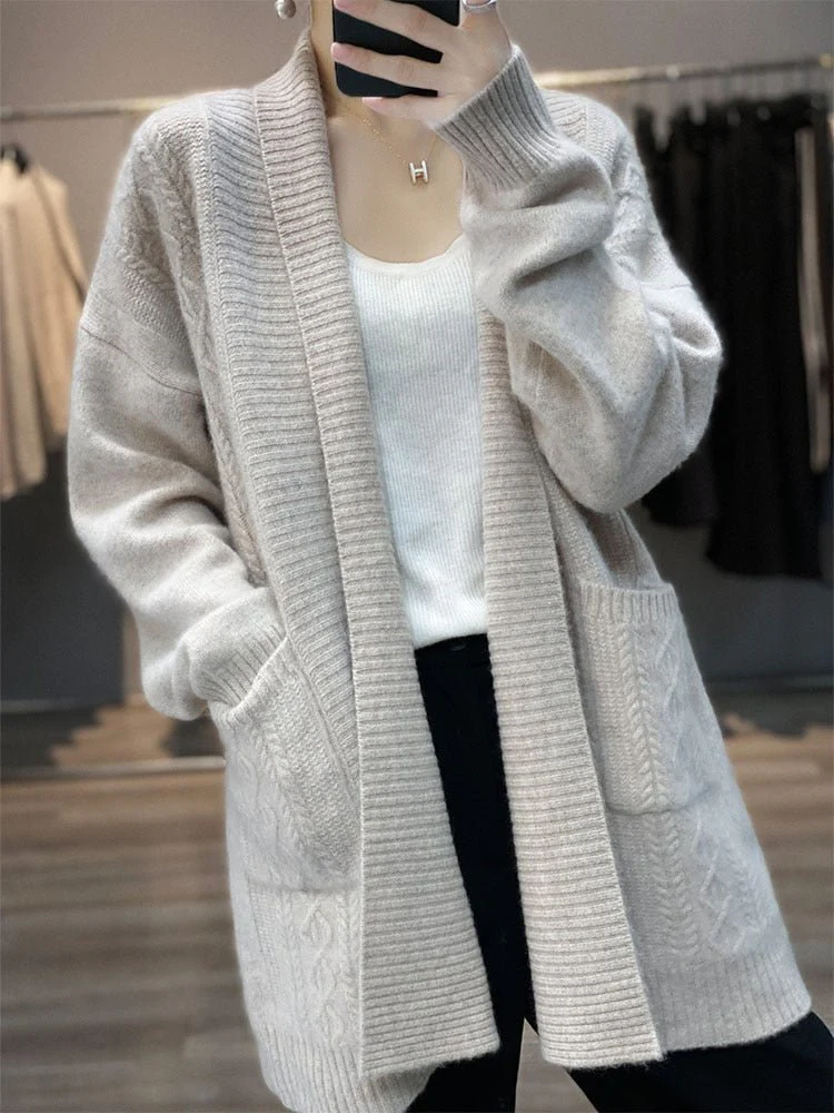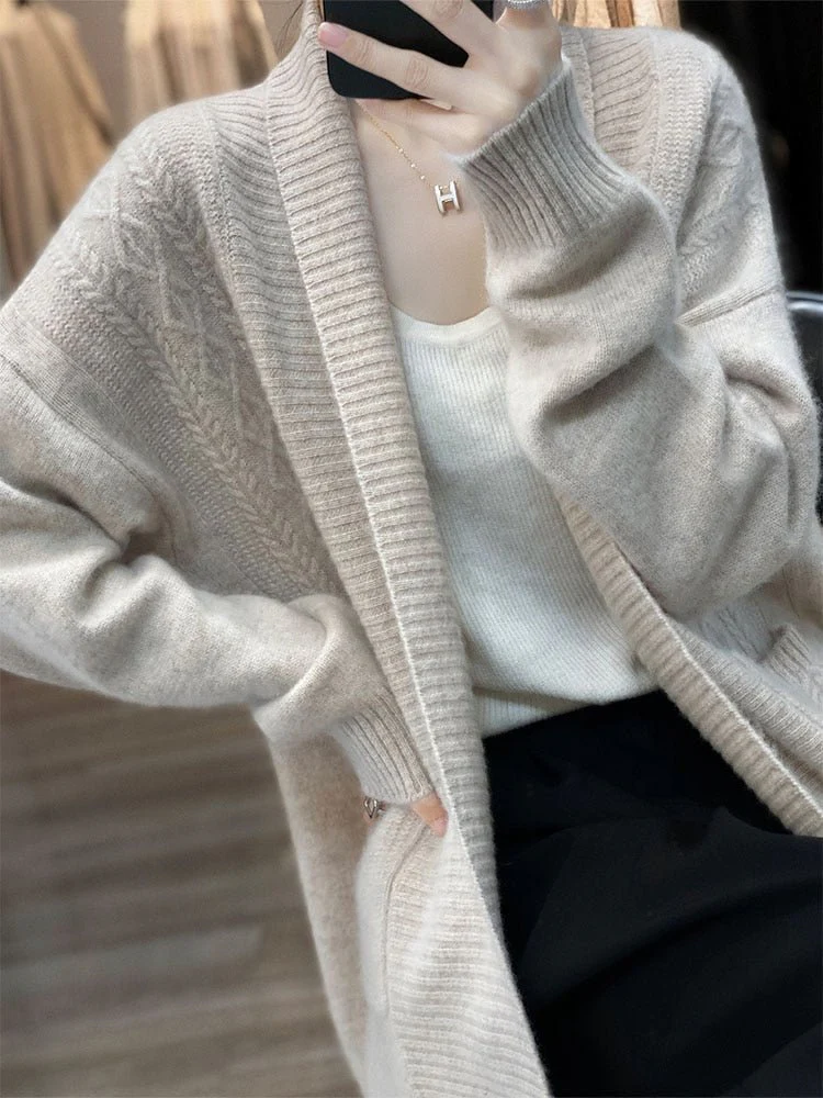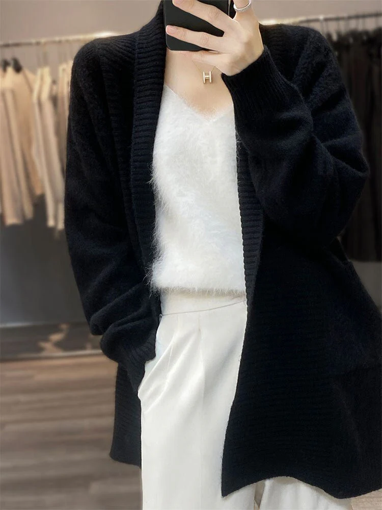 Couleur: Beige, Marron, Noir Type: cardigan Style: Casual, Chic, Coréen Matière: 100% cachemire