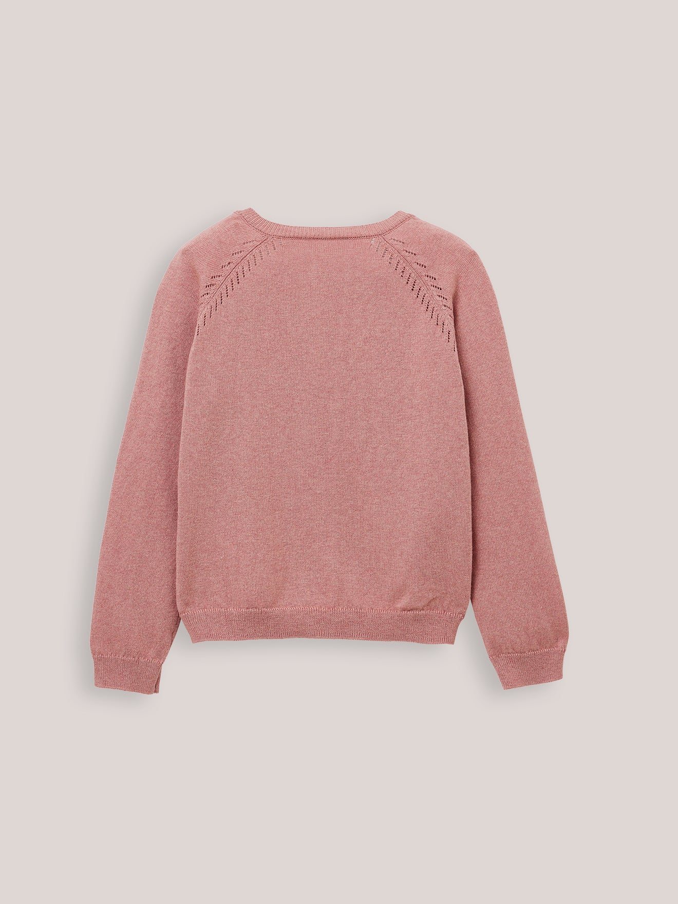 Réchauffé de laine, cet essentiel complète tous les T-shirts et blouses de saison. Ouverture boutonnée. Ajourés à l’emmanchure Finition par bord-côtes