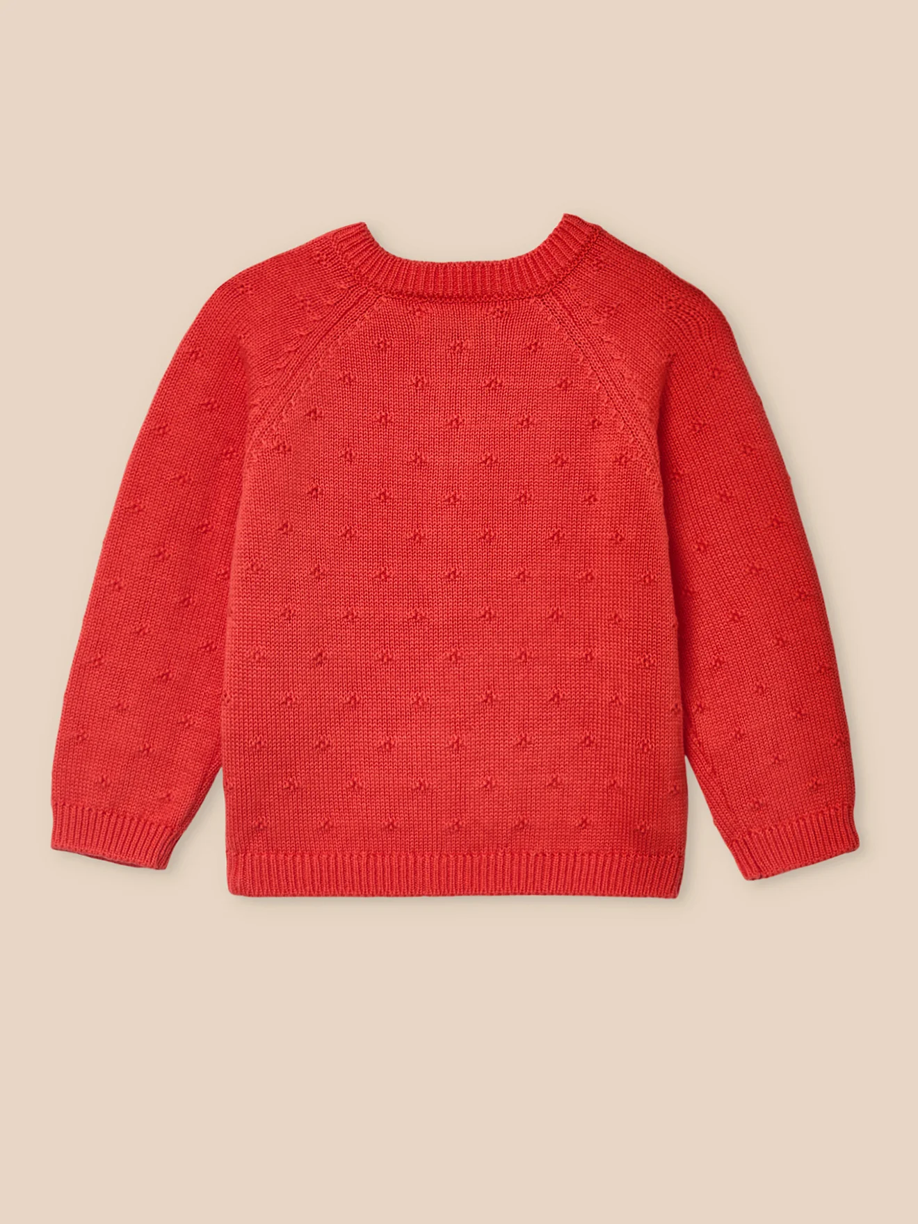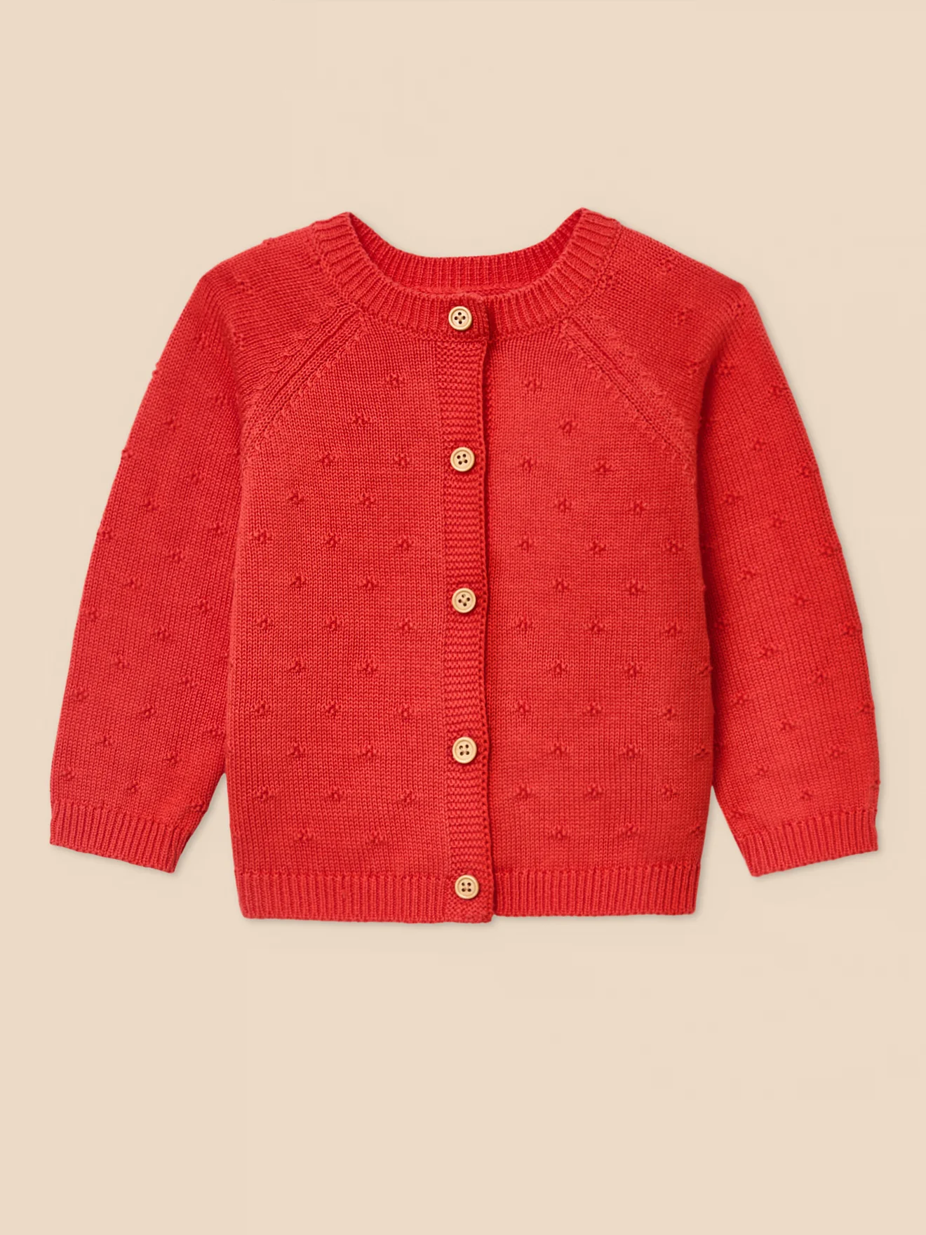 Sur une robe en tissu Liberty ou pour réchauffer une guimpe, ce cardigan aux doux coloris complètent à merveille tout le vestiaire estival. Point fantaisie reliéfé Manches raglan. Boutons en bois Finition par bord-côtes