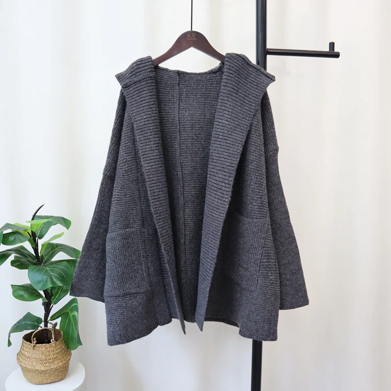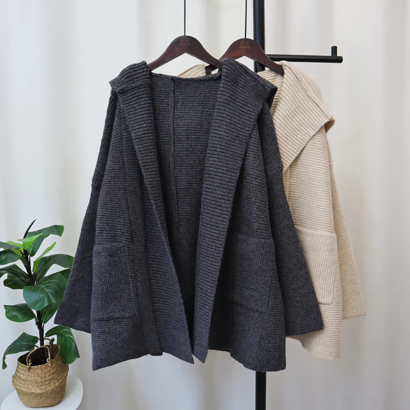 Cardigan Tricoté à Capuche Coréen