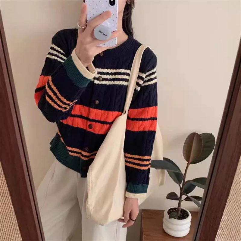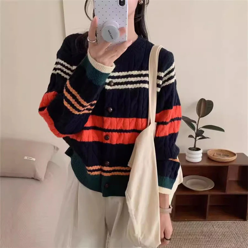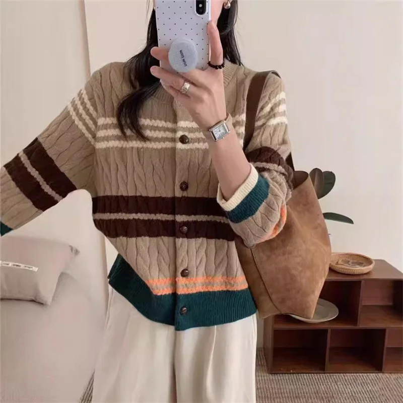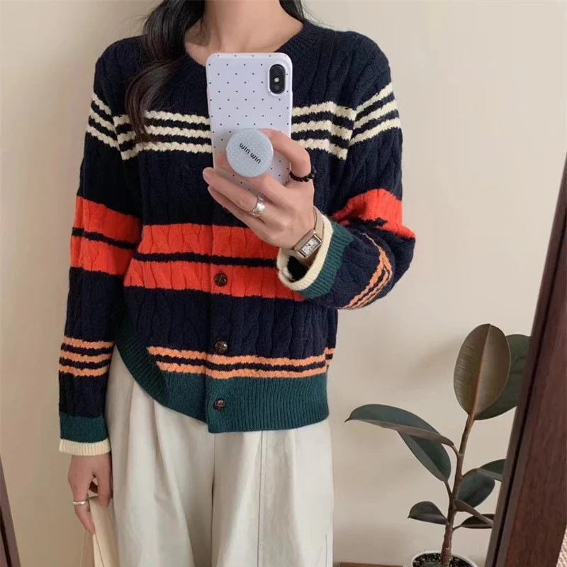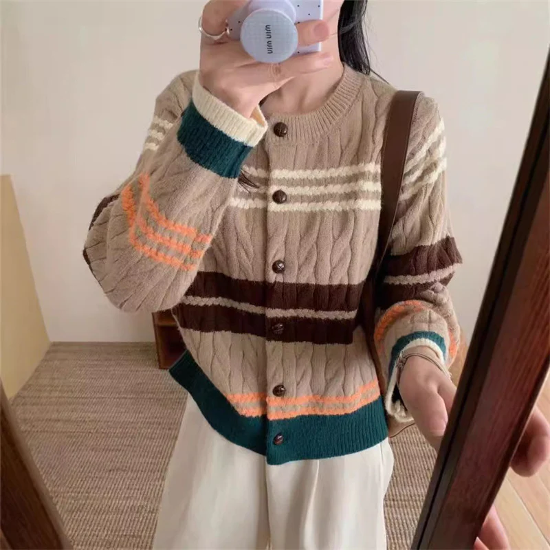 Adoptez le confort et le style avec notre cardigan tricoté coréen, parfait pour l’automne et l’hiver. Ce modèle polyvalent, avec son design à rayures et sa coupe ajustée, est idéal pour toutes les occasions, que ce soit pour le travail ou une sortie décontractée. 🌟