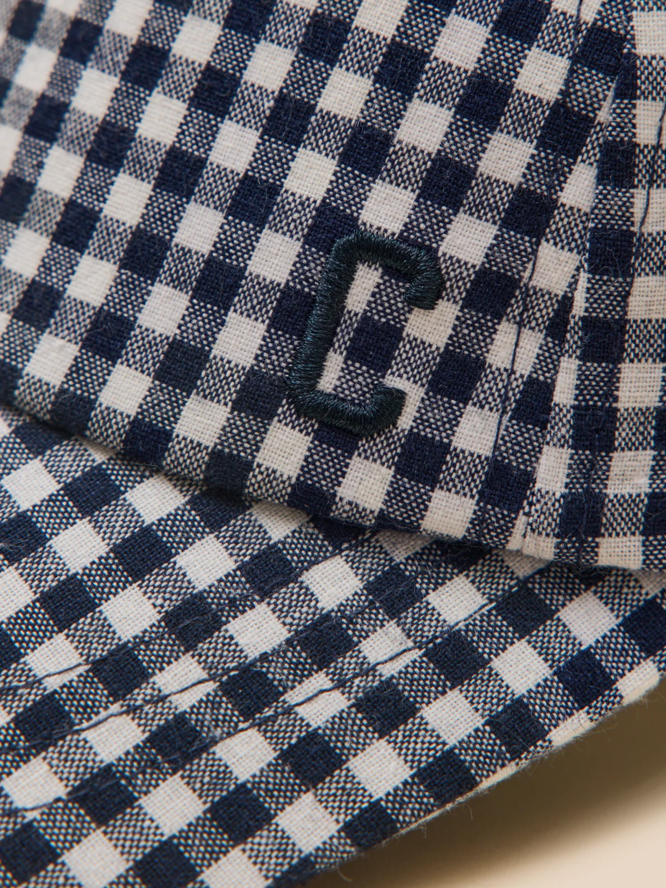 Cette casquette en vichy, à la fois élégante et estivale, offre une manière chic de se protéger du soleil. C brodé à la base