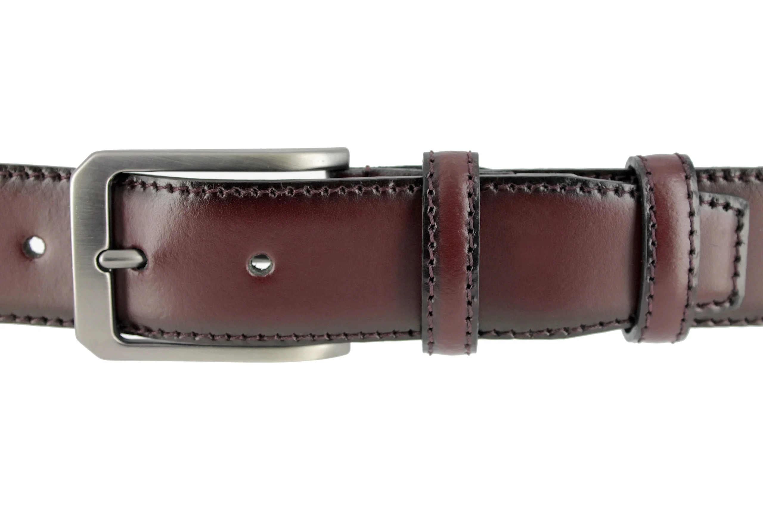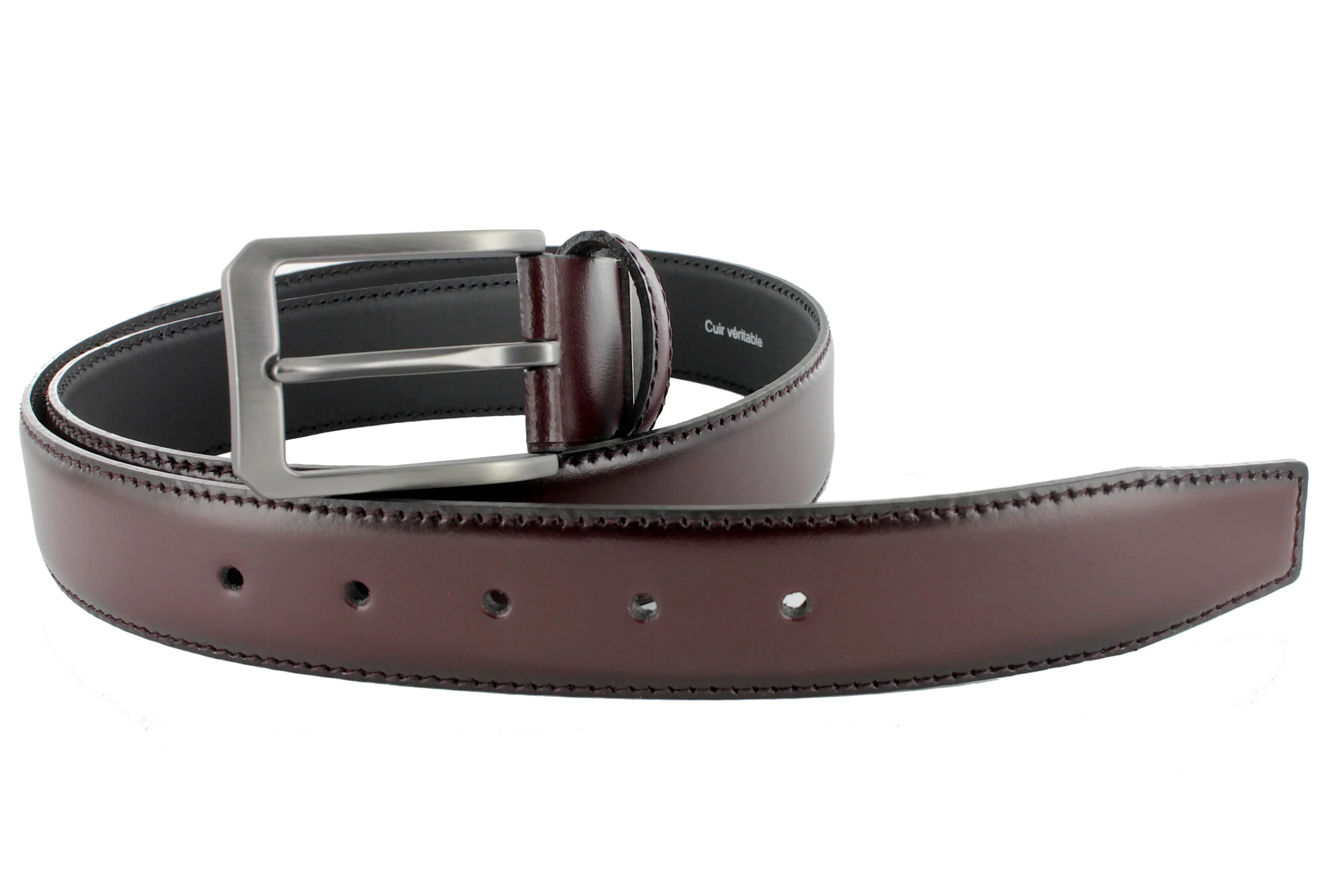 Ceinture en cuir bordeaux. Boucle ardillon métal double passant en cuir.