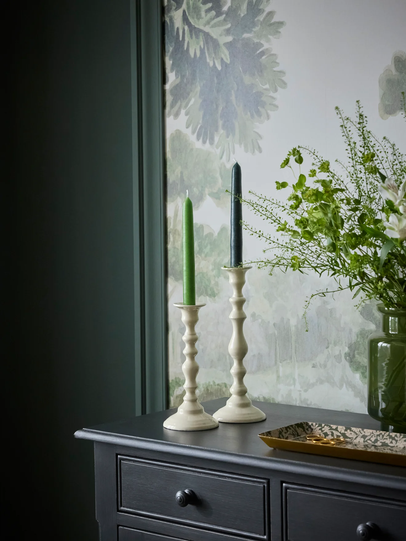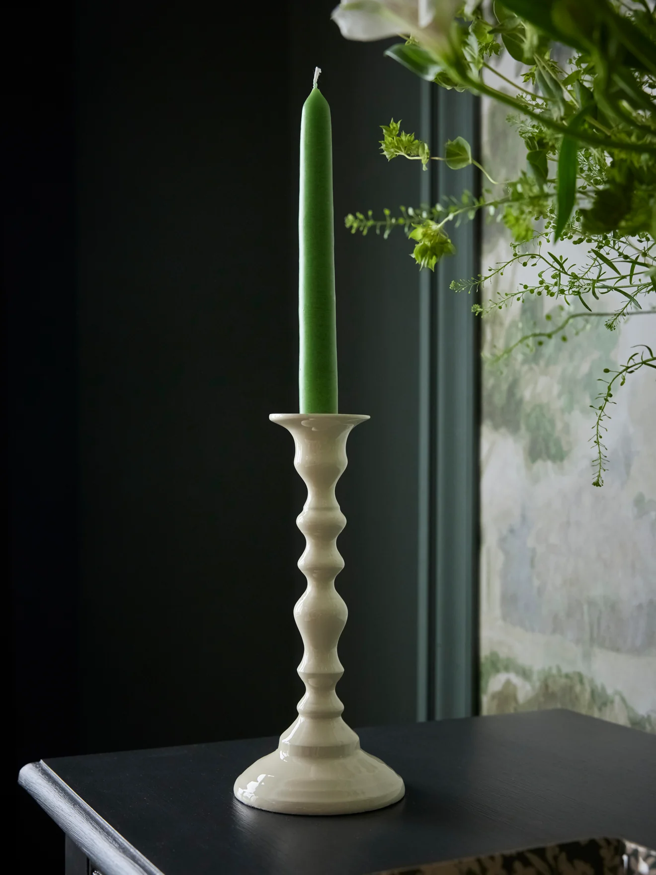 Le bougeoir Yvane est une réinterprétation des chandeliers d’autrefois. Un classique chic revisité, réalisé en métal émaillé finition brillante. Chandelier pour bougie de diamètre standard (21 mm). Hauteur 20,5 cm