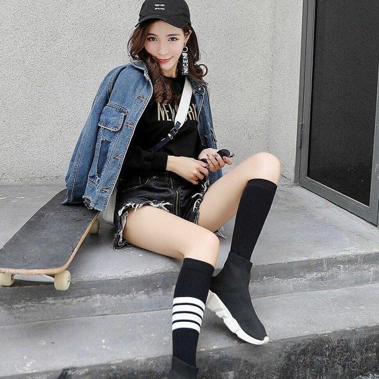 Ces chaussettes avec des bandes asymétriques sont très confortables et vont augmenter votre K-Style. Mettez en valeur vos jambes et vos pieds comme les jeunes coréennes.