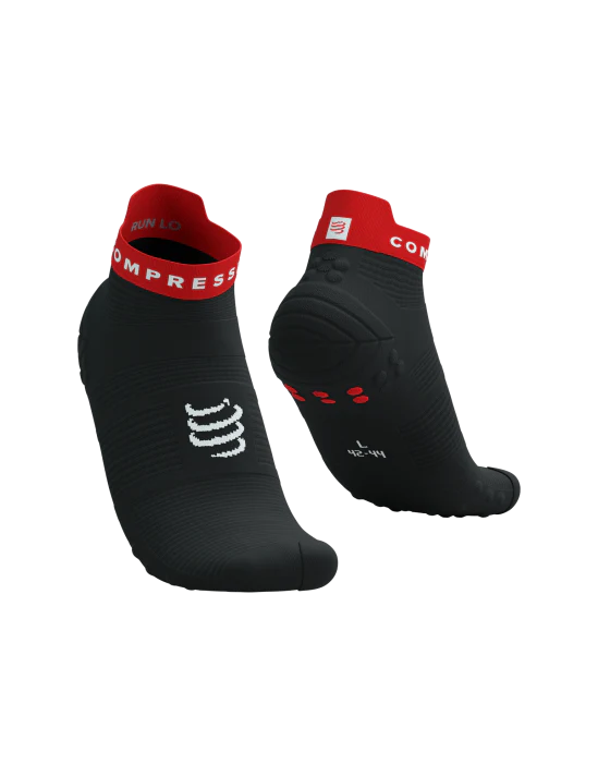 Chaussettes Compressport Pro Racing Socks v4.0 run hauteur low bassses noir bande rouge