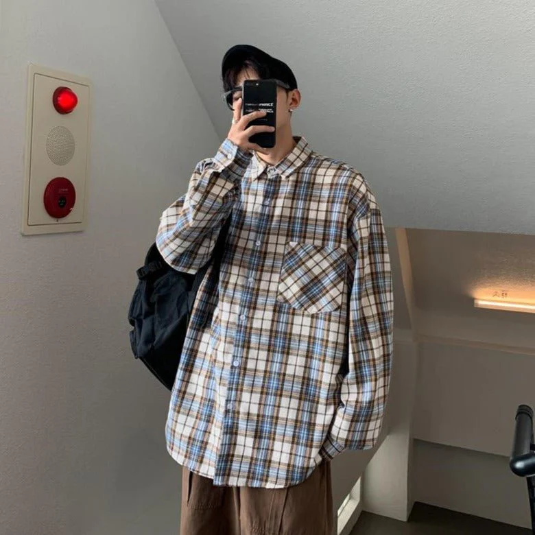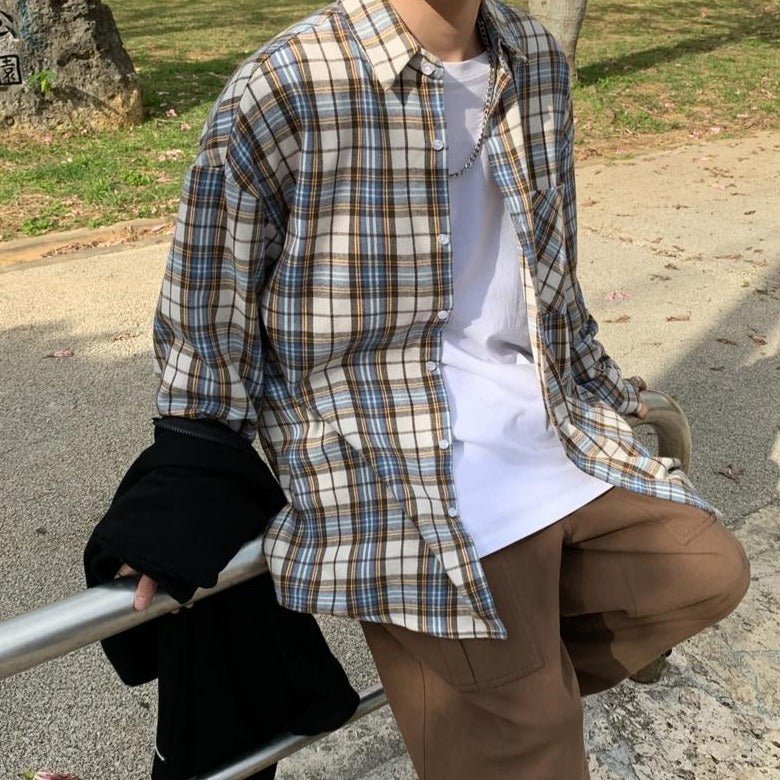 Ce modèle de chemise est très tendance à Séoul, car il fait partie intégrante de la mode rétro 80’s qui s’est imposée dans le monde de la K-Pop. C’est une chemise à carreaux avec des couleurs simples et tendances.