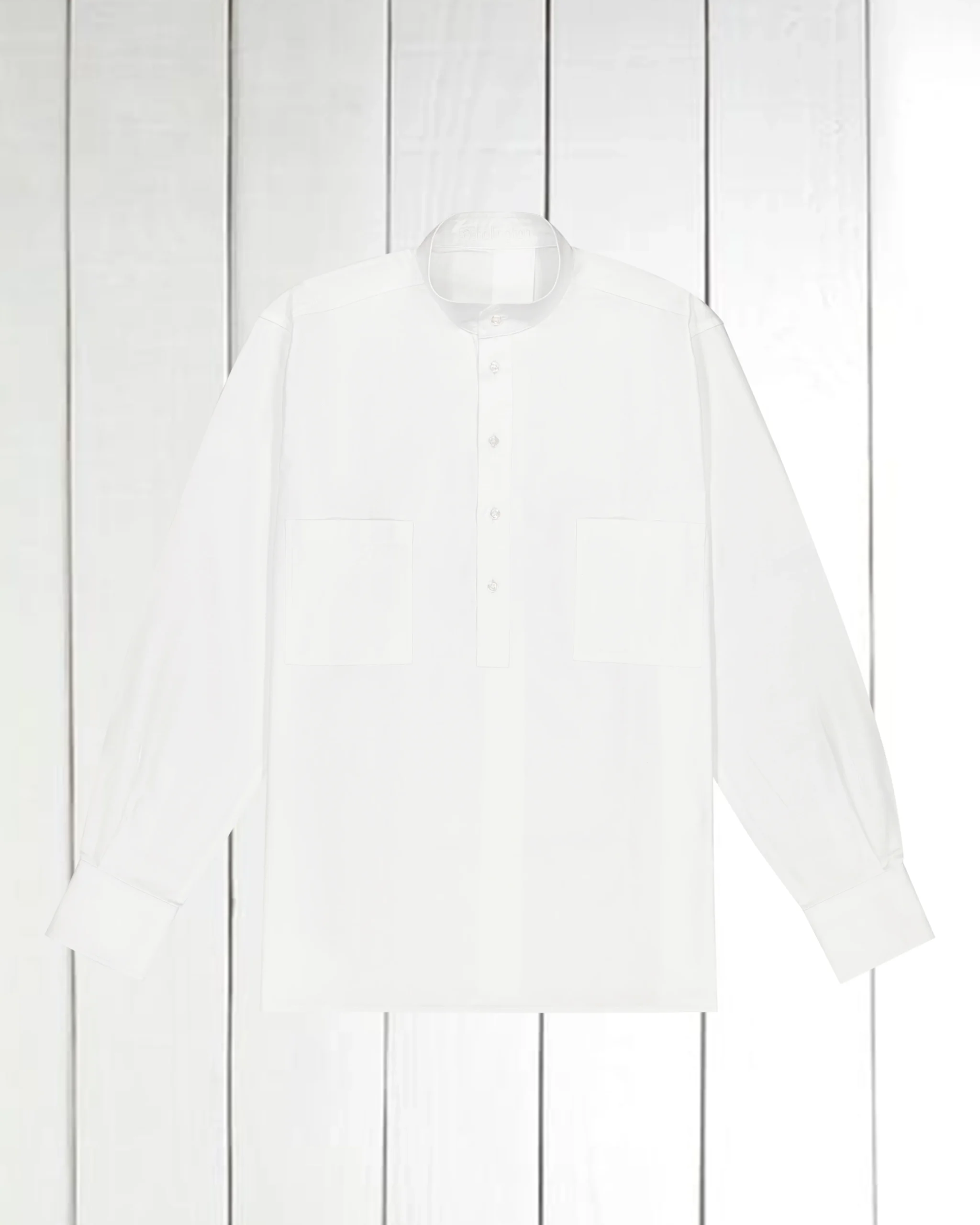 chemise à col mao en coton de luxe white __TAB__ fiche technique Chemise col mao Coupe droite Manches longues Poignets à double boutonnage Deux poches poitrine Patte de boutonnage jusqu’à mi-corps Pli d’aisance au dos Col et poignets légèrement entoilés Composition : 100 % coton tissé en République Tchèque Fabriquée au Portugal __TAB__ livraison et […]