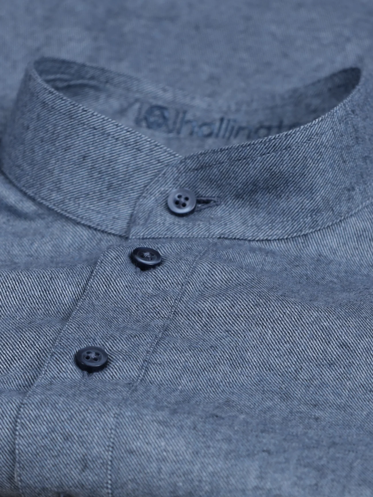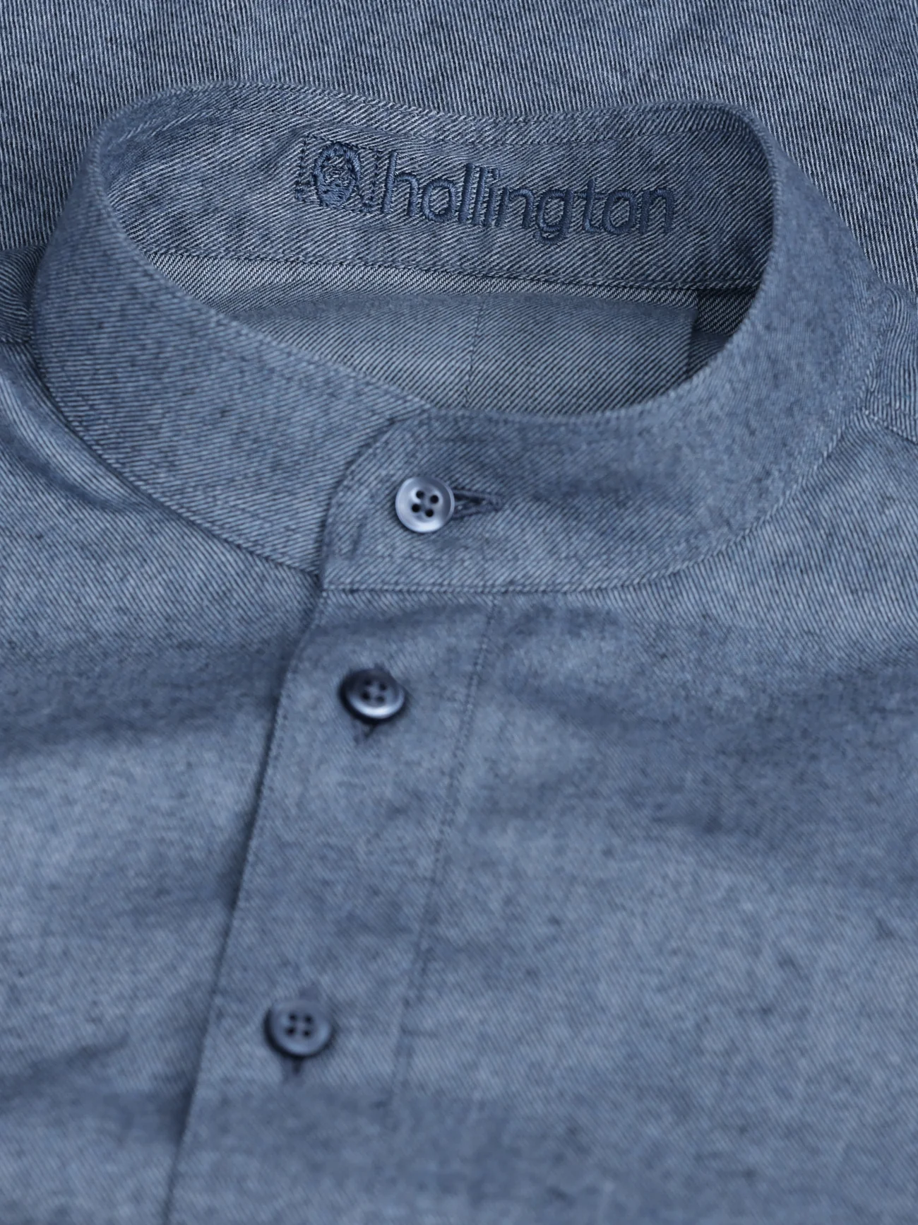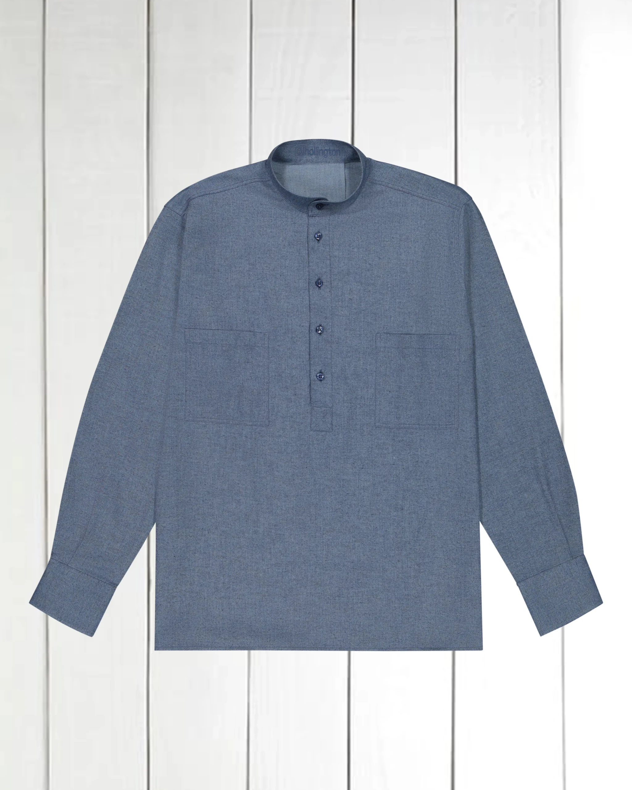chemise à col mao en coton façon denim gris bleu