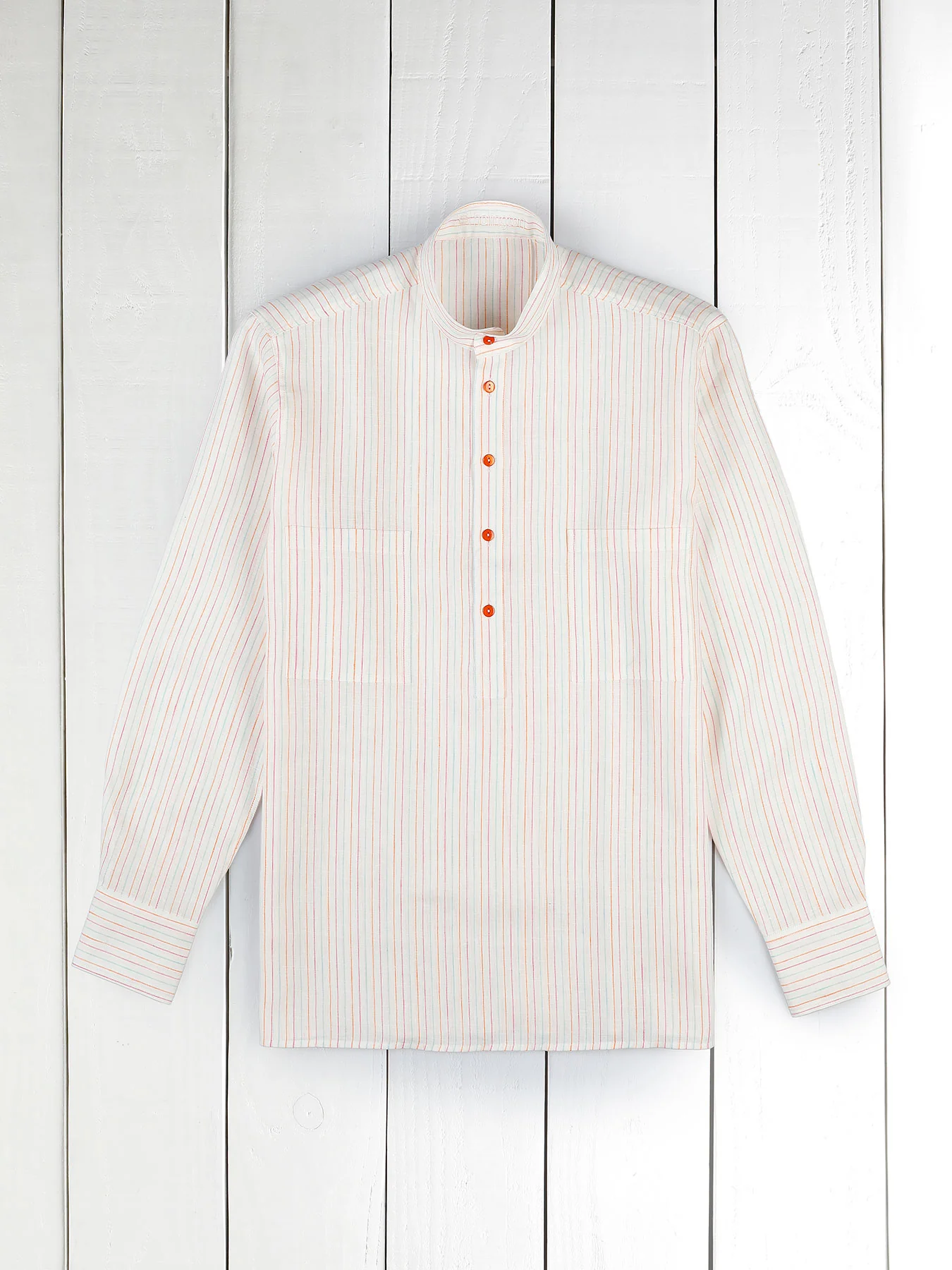 Soyez le premier à laisser votre avis sur “chemise à col nehru en toile de lin à rayures multicolores”