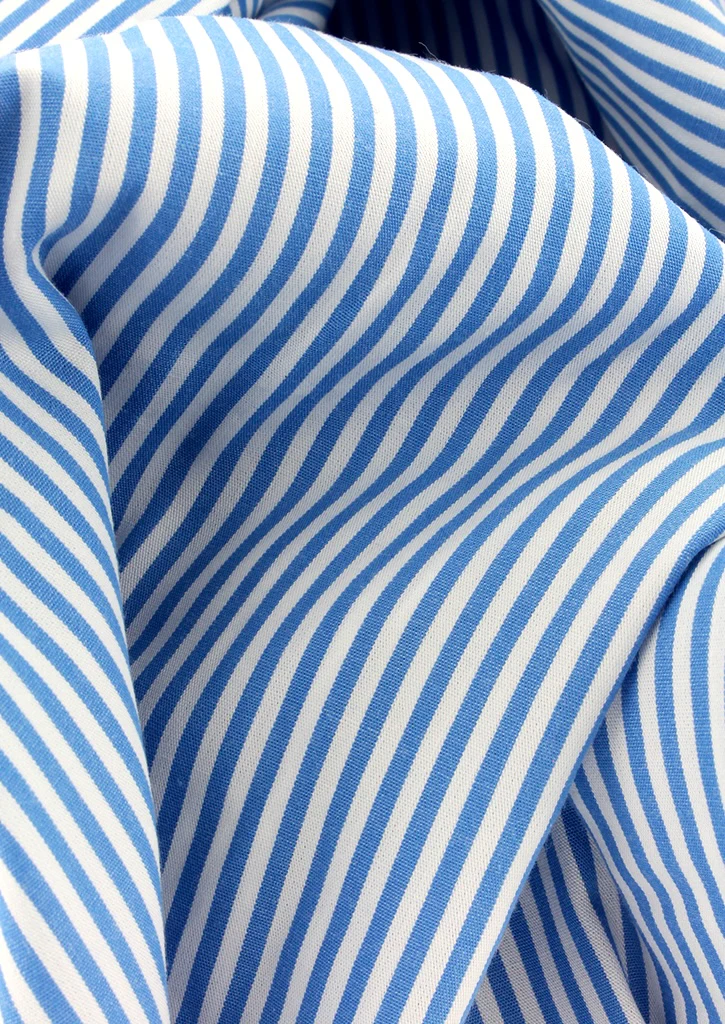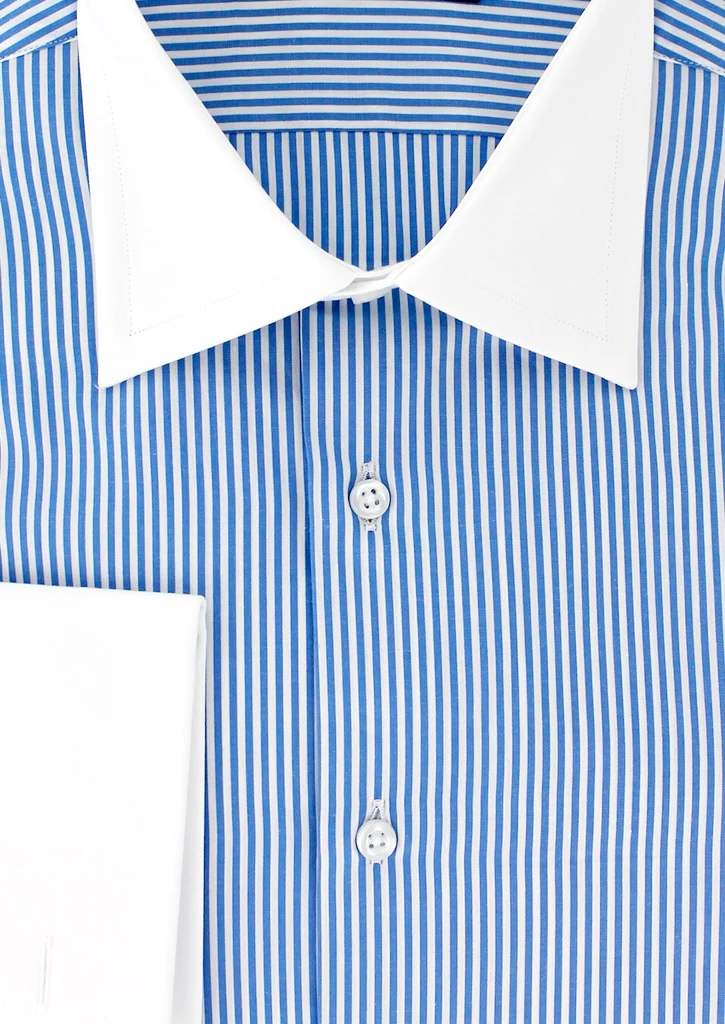Chemise à fines rayures bleu ciel col et poignets mousquetaires blancs