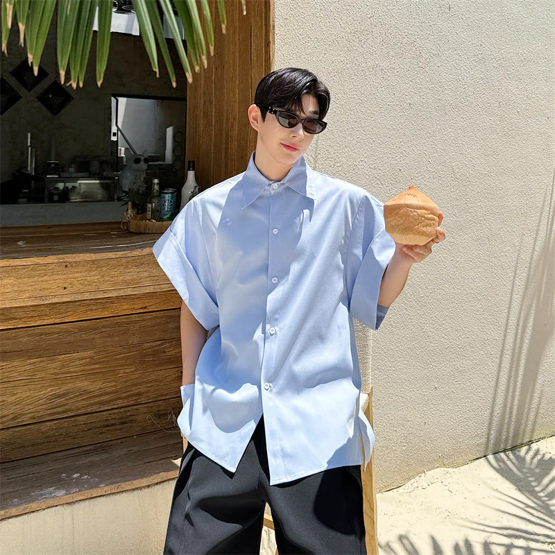 Adoptez un look tendance et décontracté avec notre chemise à manches courtes coréenne. Son motif à carreaux et son col pointu apportent une touche de modernité à votre tenue. Idéale pour un style jeune et branché ! 🌟