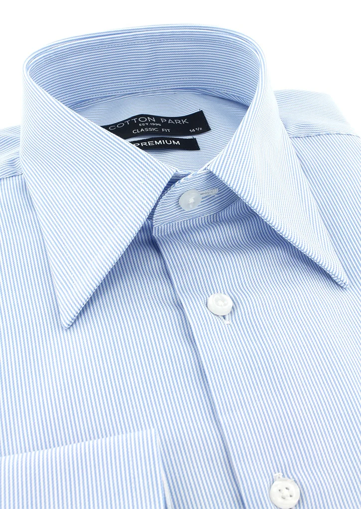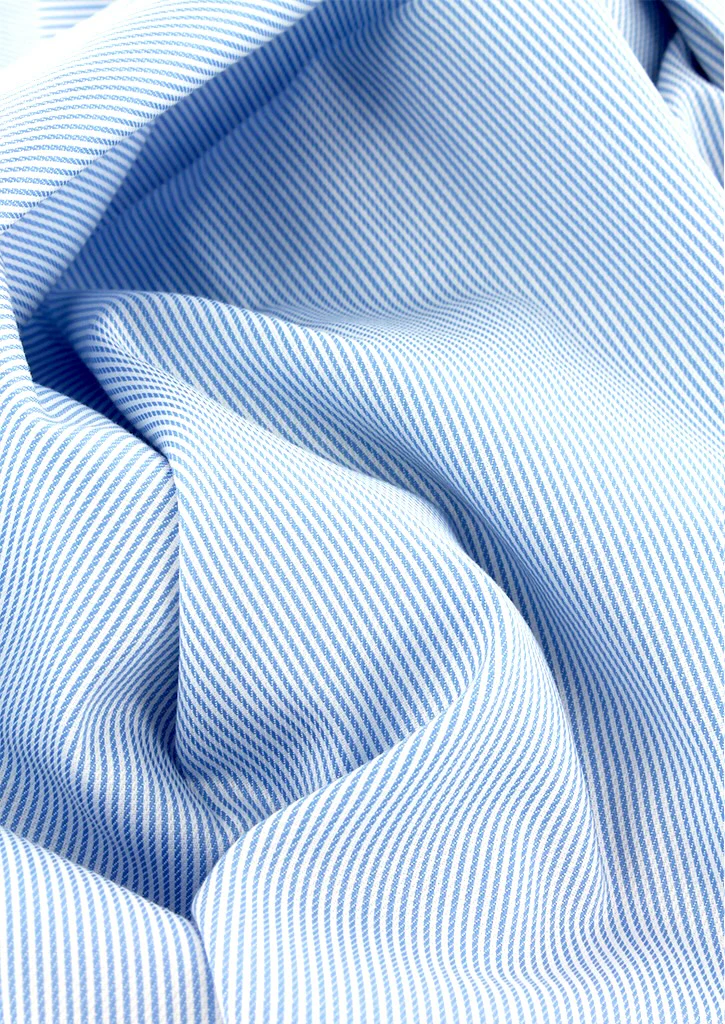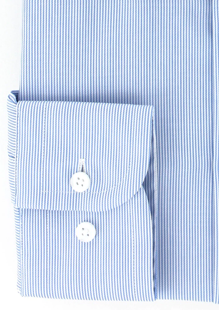 Chemise à fines rayures bleu ciel col et poignets mousquetaires blancs