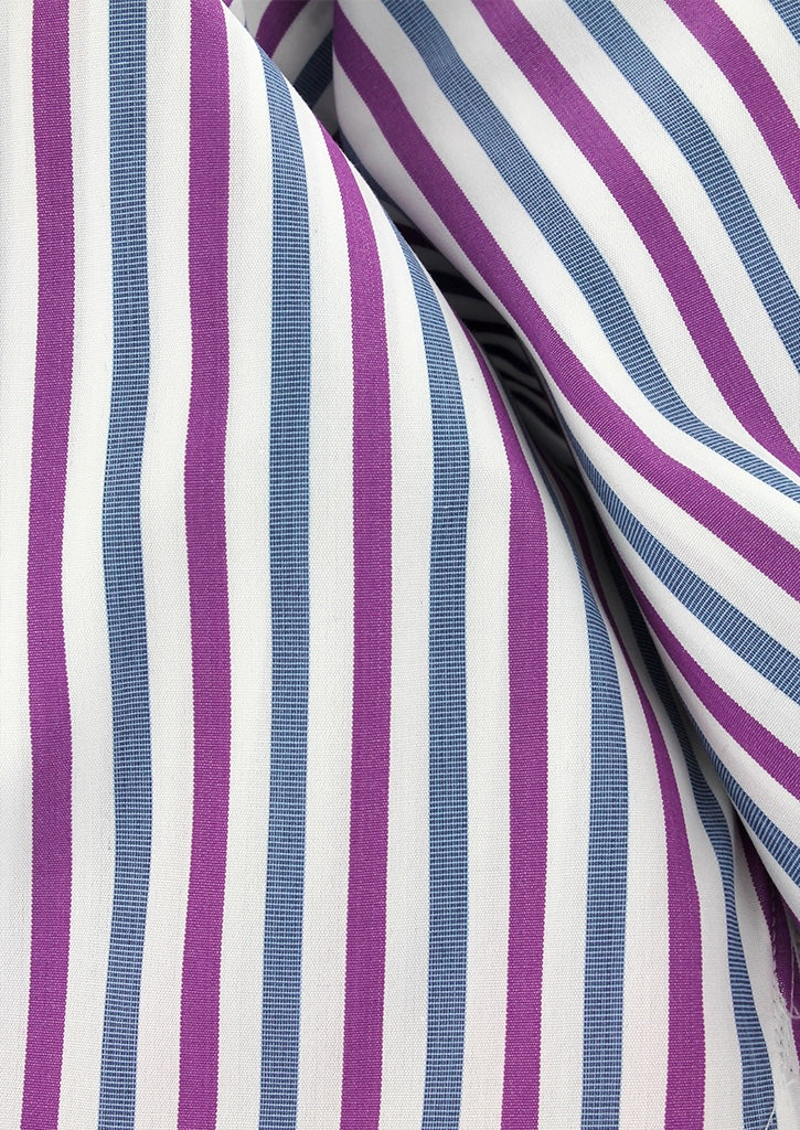 Chemise à rayures fuchsia et bleues double retors