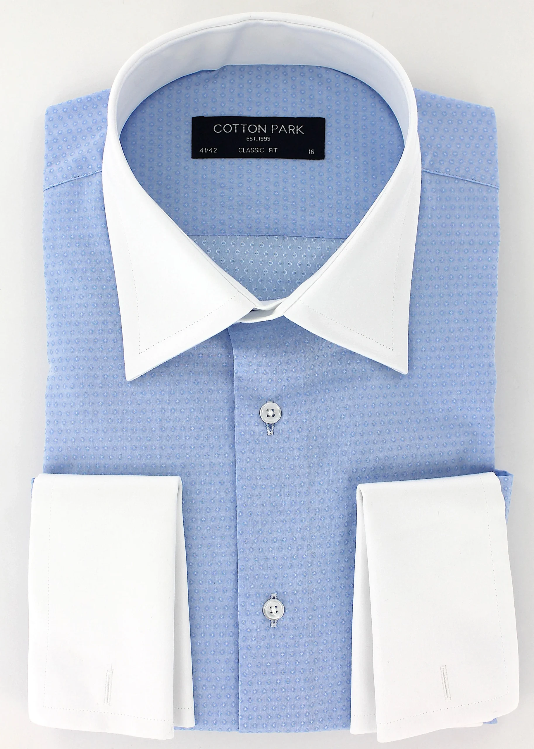 Chemise bleu ciel à poignets mousquetaires blancs