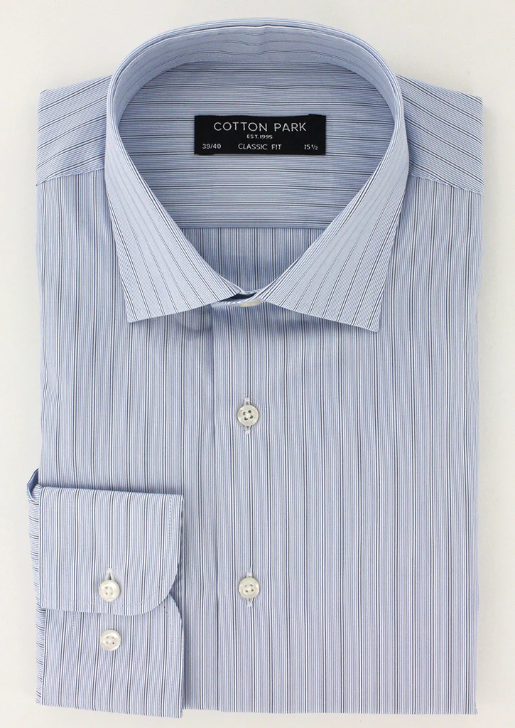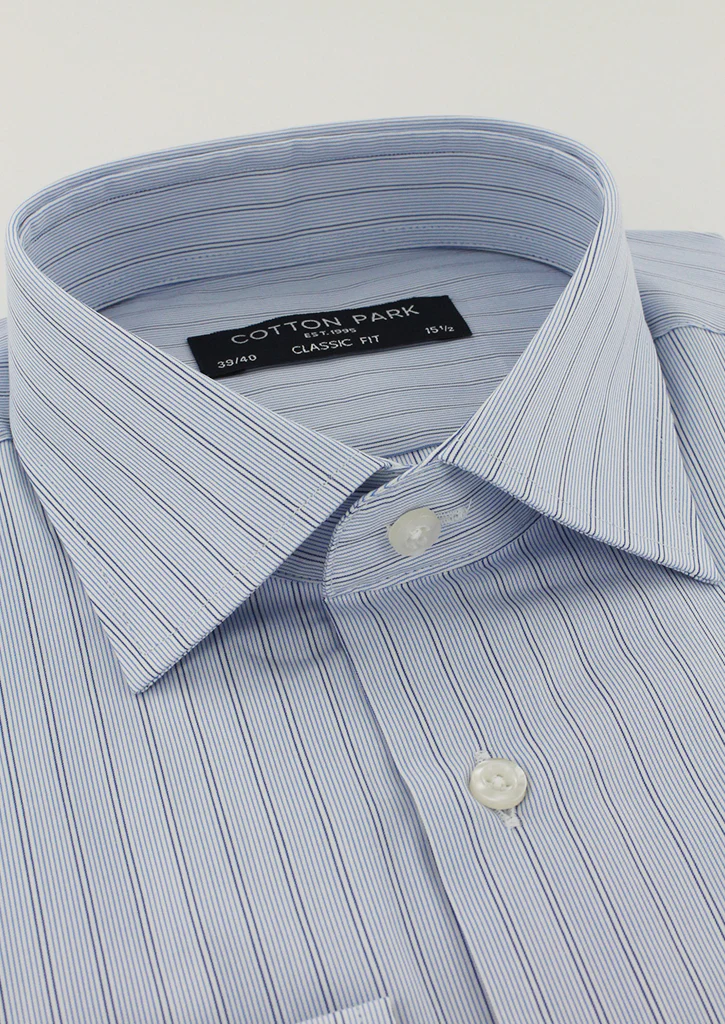 Chemise bleu ciel à fines rayures