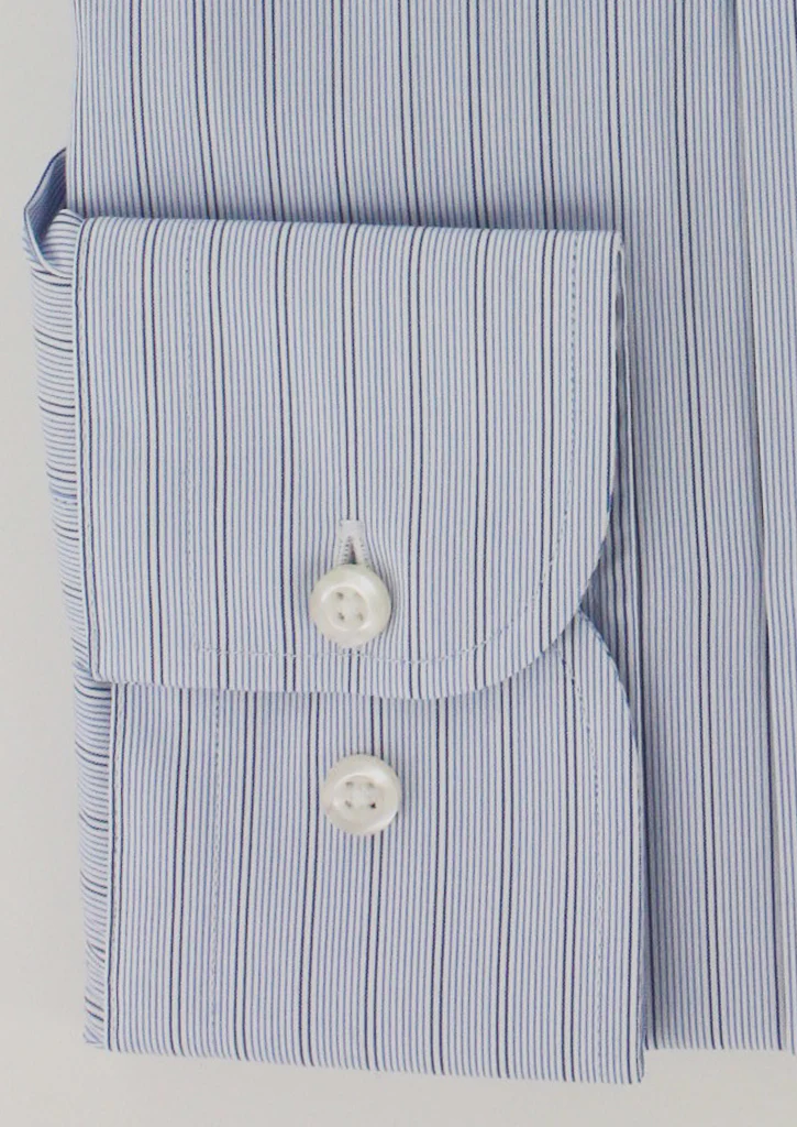 Chemise à fines rayures bleu ciel col et poignets mousquetaires blancs