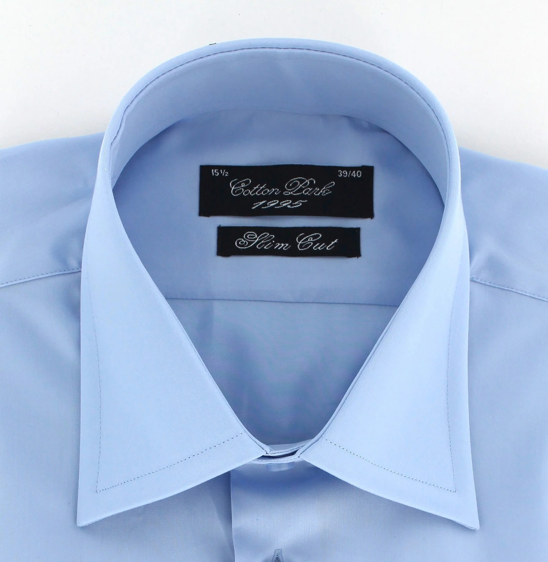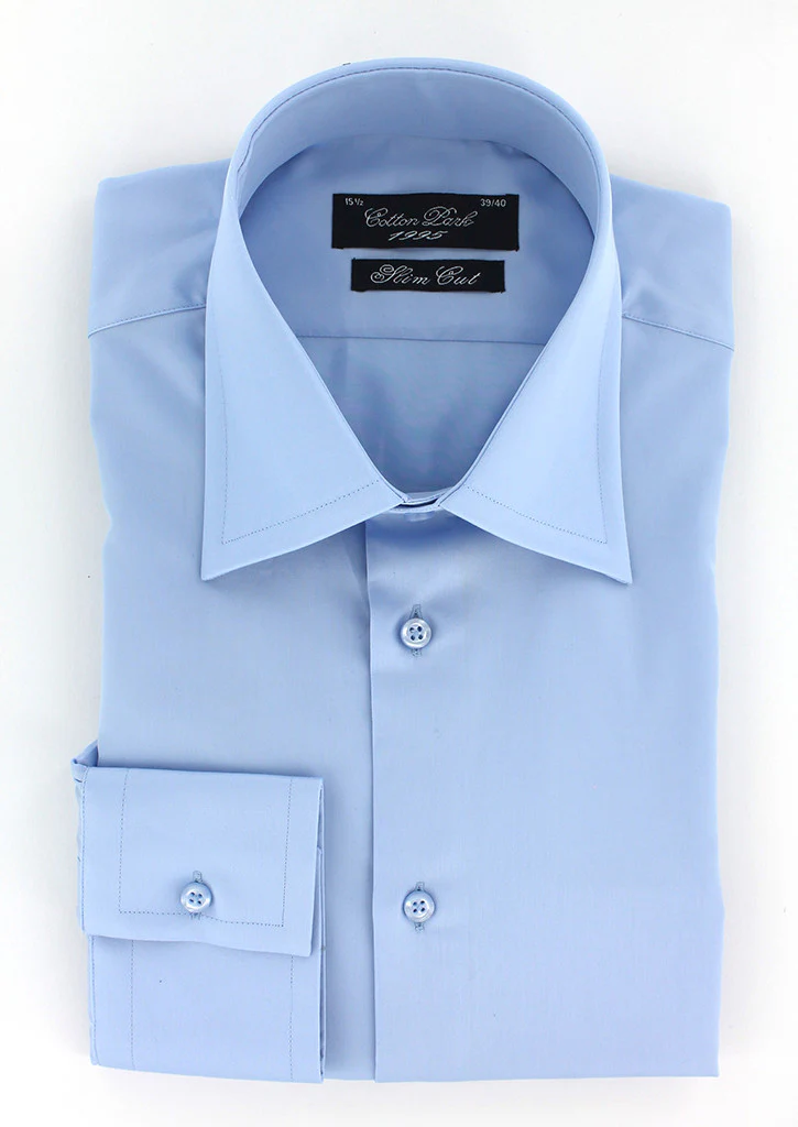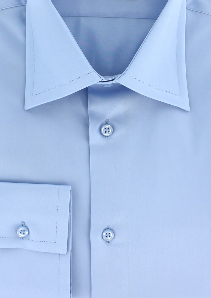Chemise coupe cintrée pour homme, confectionnée en 100% satin de coton bleu ciel, alliant confort et élégance. Cette chemise à manches longues est dotée d’un col français, offrant une touche sophistiquée à votre tenue, que vous choisissiez de la porter avec ou sans cravate selon vos préférences. Son col, renforcé par des baleines collées et intégrées, conserve sa rigidité au fil du temps pour un aspect impeccable à chaque utilisation.