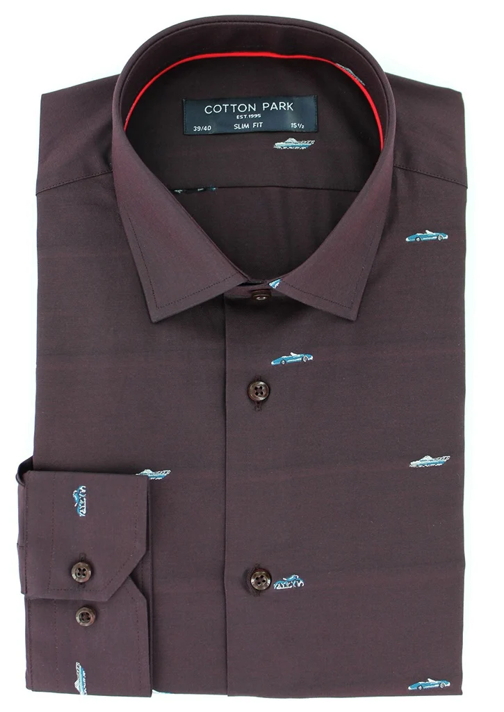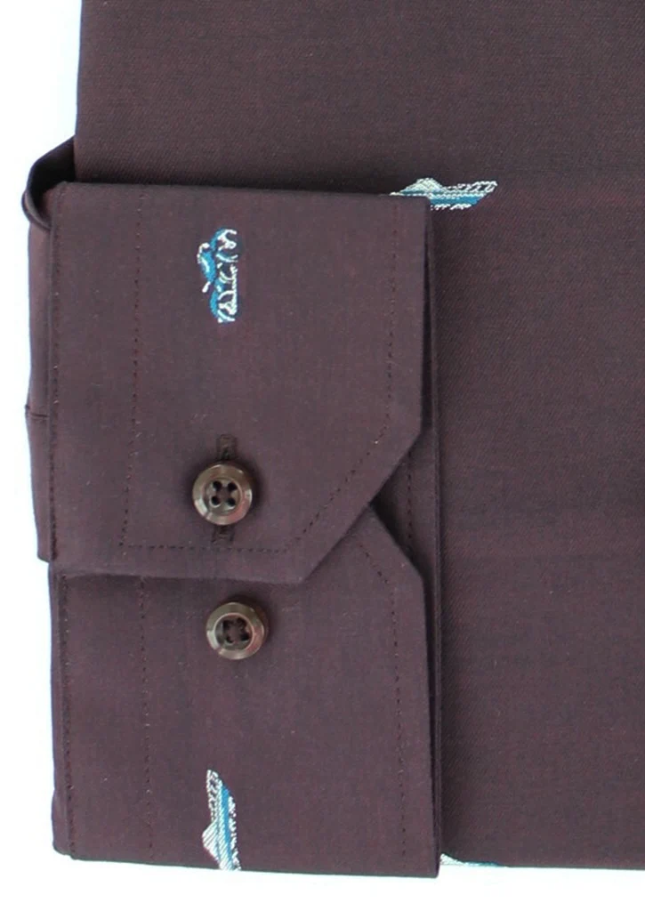 Chemise 100 % coton en coupe cintrée de couleur bordeaux à motifs. Son col semi-italien est composé de baleines intégrées afin de conserver sa rigidité dans le temps. Ses manches longues avec poignets boutons réglables permettent de s’adapter avec précision à la largeur des poignets. Cette chemise peut se porter avec ou sans cravate.