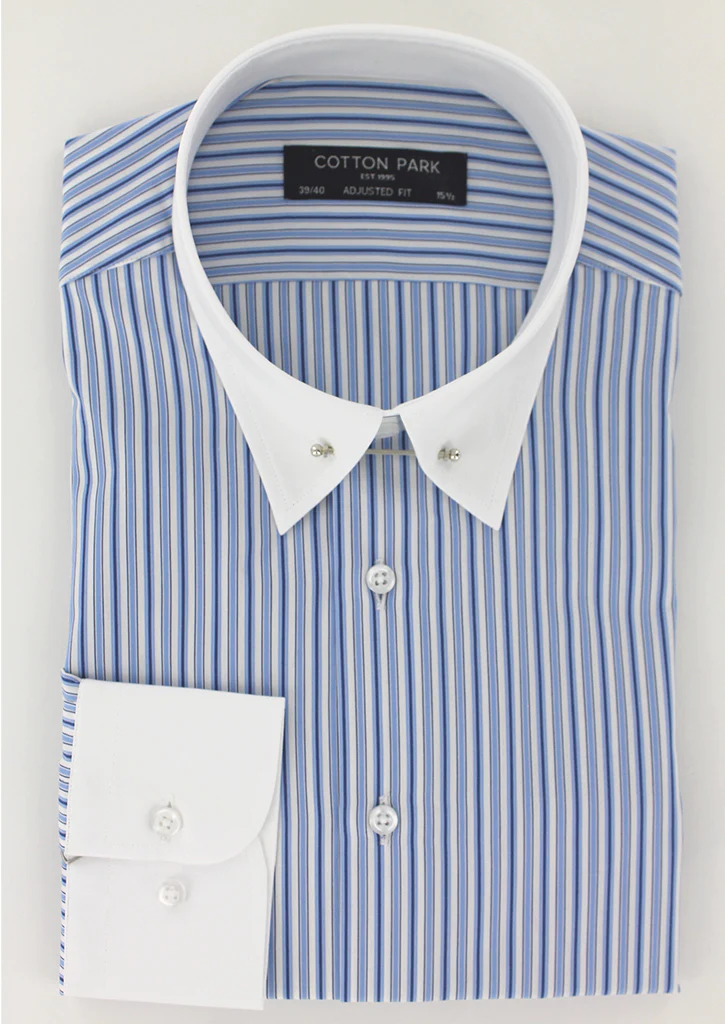 Chemise cintrée col anglais à rayures bleues
