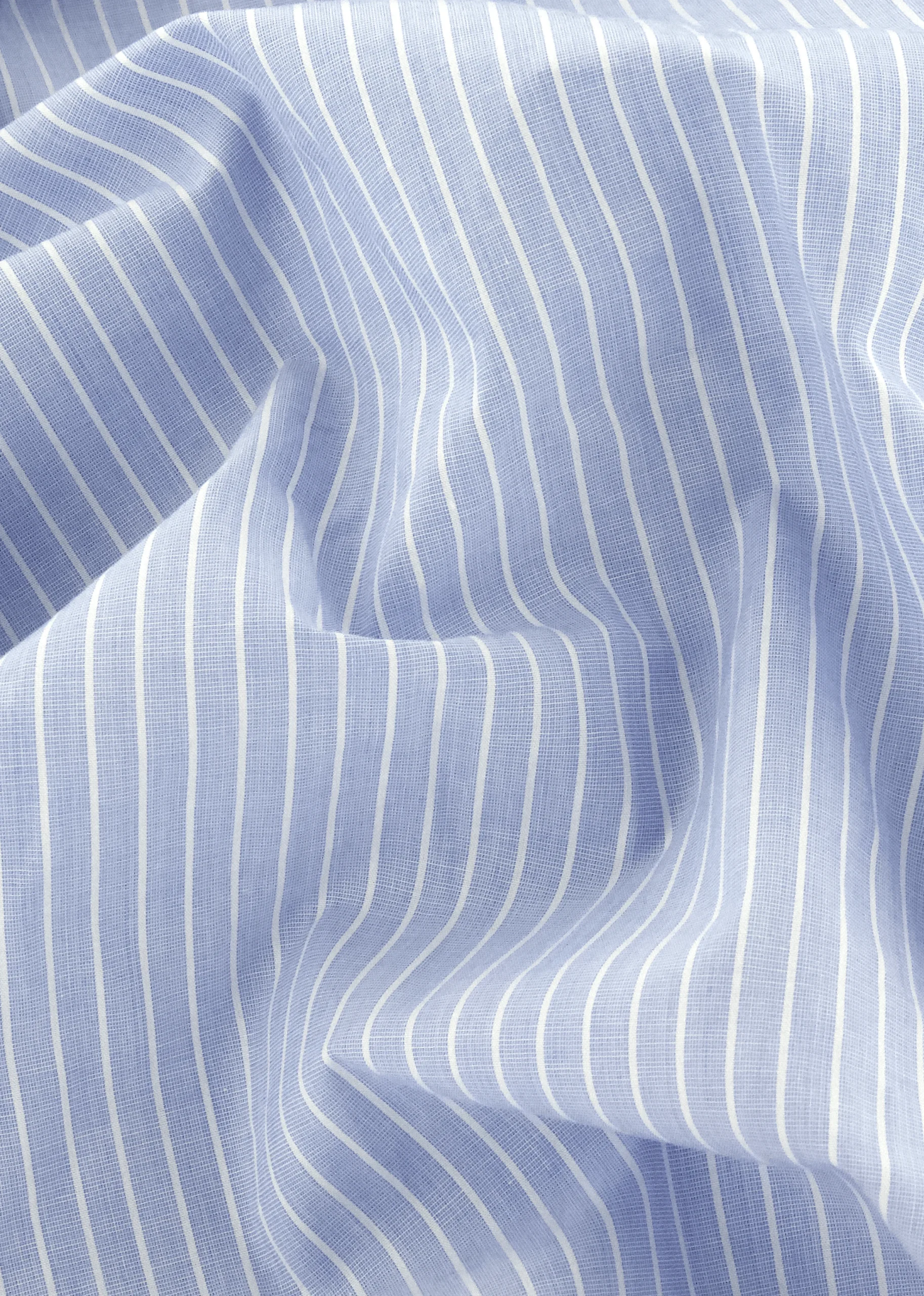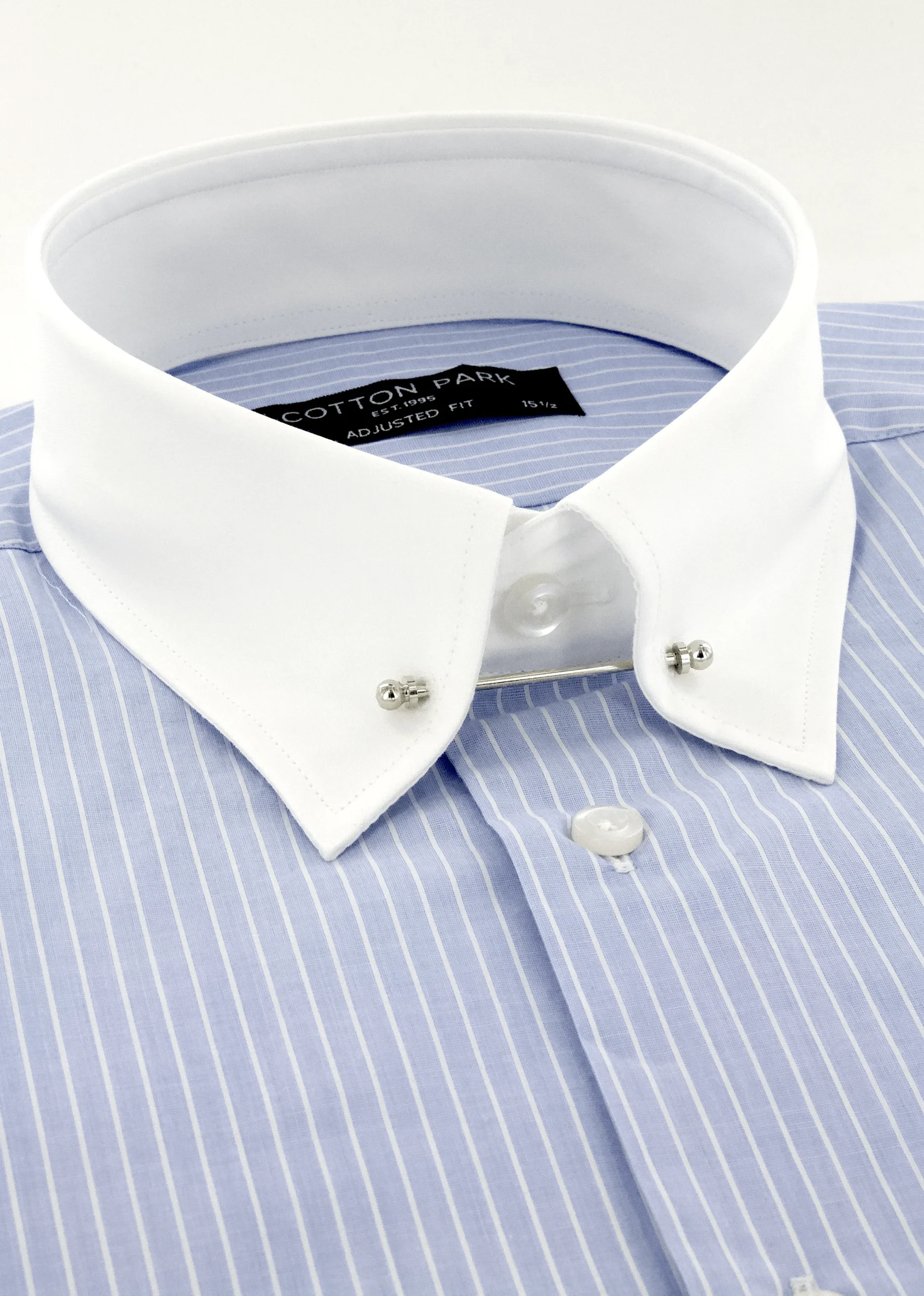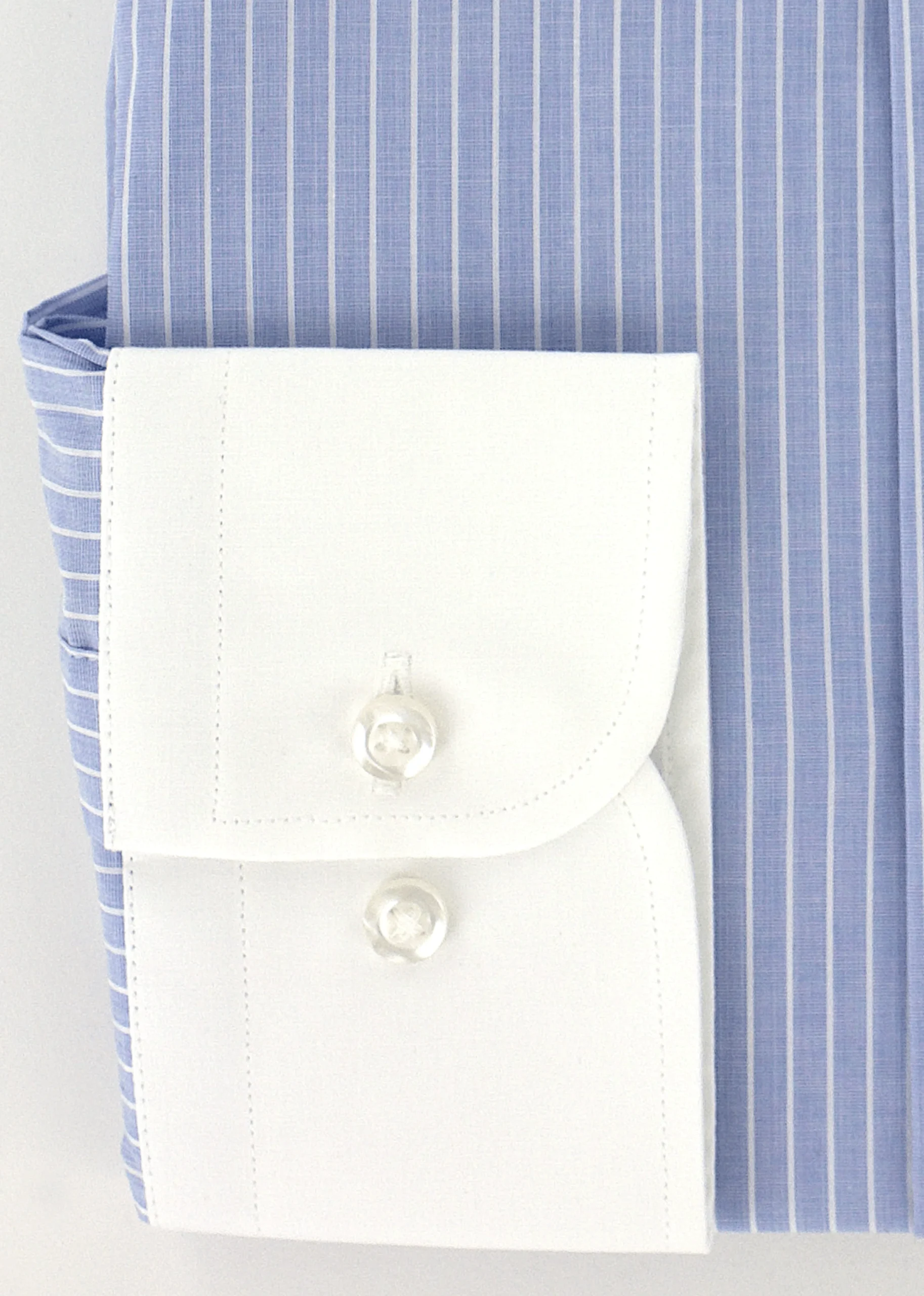 Chemise à fines rayures bleu ciel col et poignets mousquetaires blancs