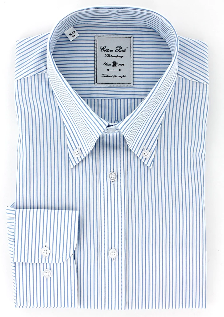 Découvrez notre chemise col bouton homme coupe droite, confectionnée en popeline de coton à rayures bleu ciel. Grâce à son tissu 100% coton, cette chemise manches longues assure un confort optimal tout au long de la journée, en toutes saisons.